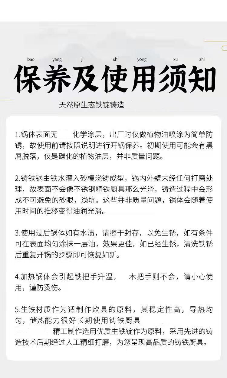 20cm wooden handle frying pan height 2cm, 26cm wooden handle frying pan height 2cm