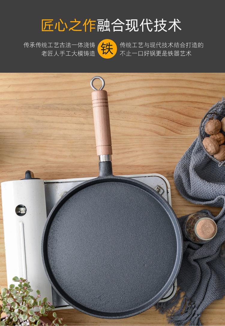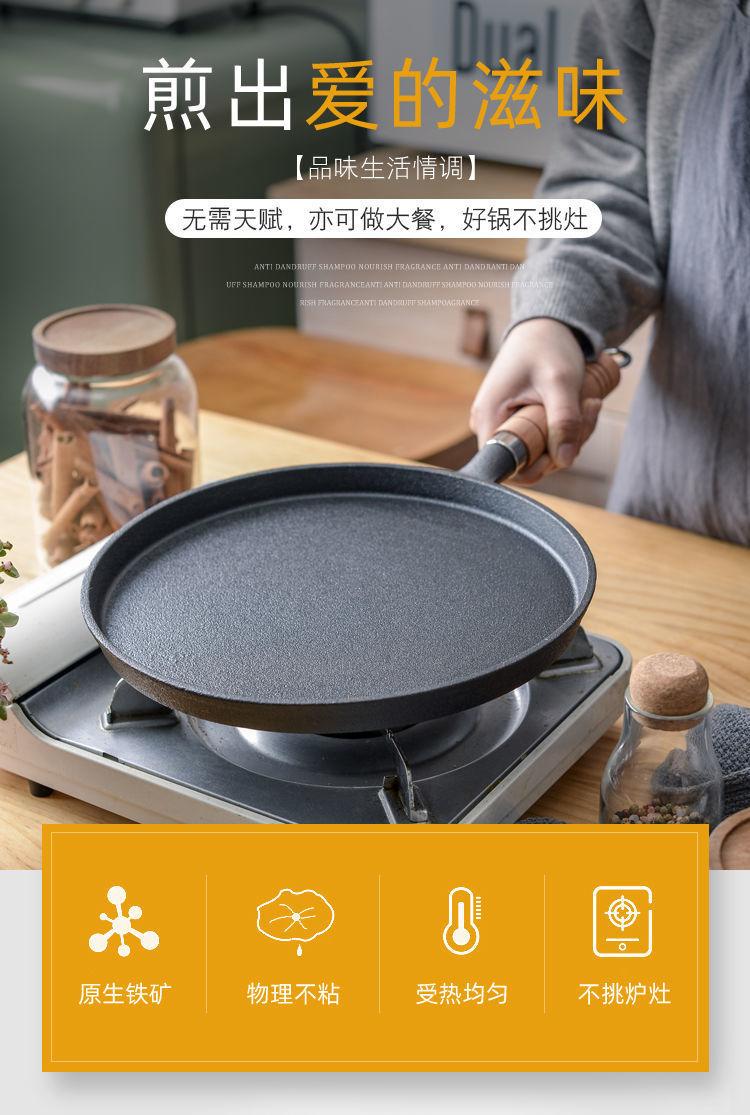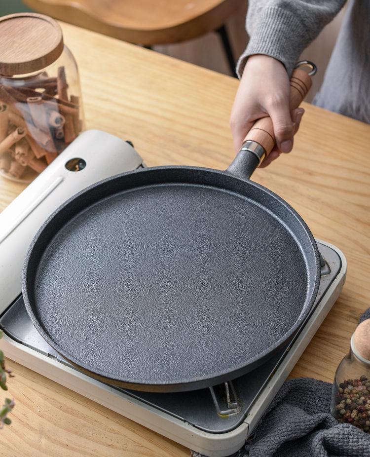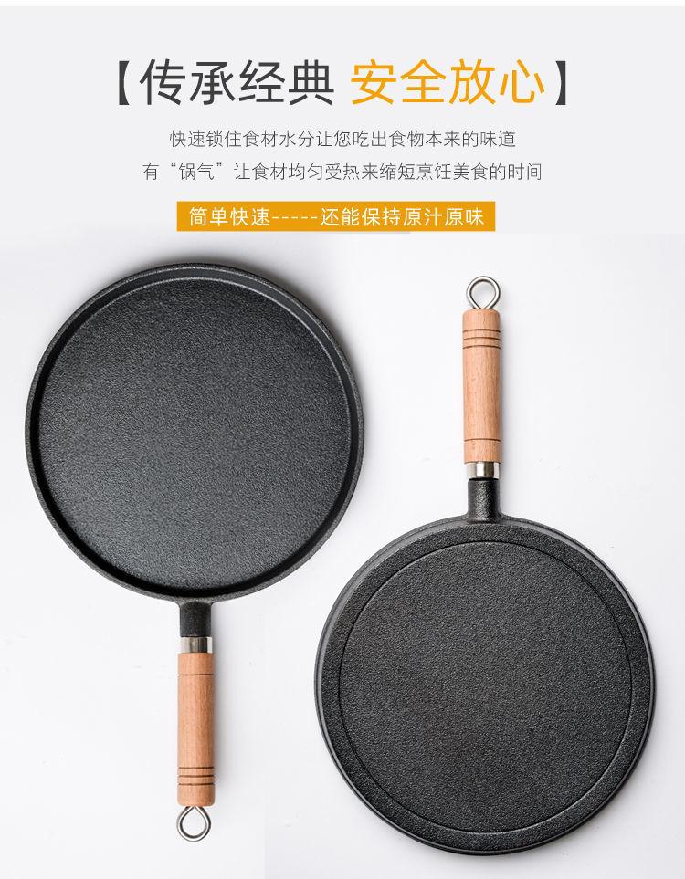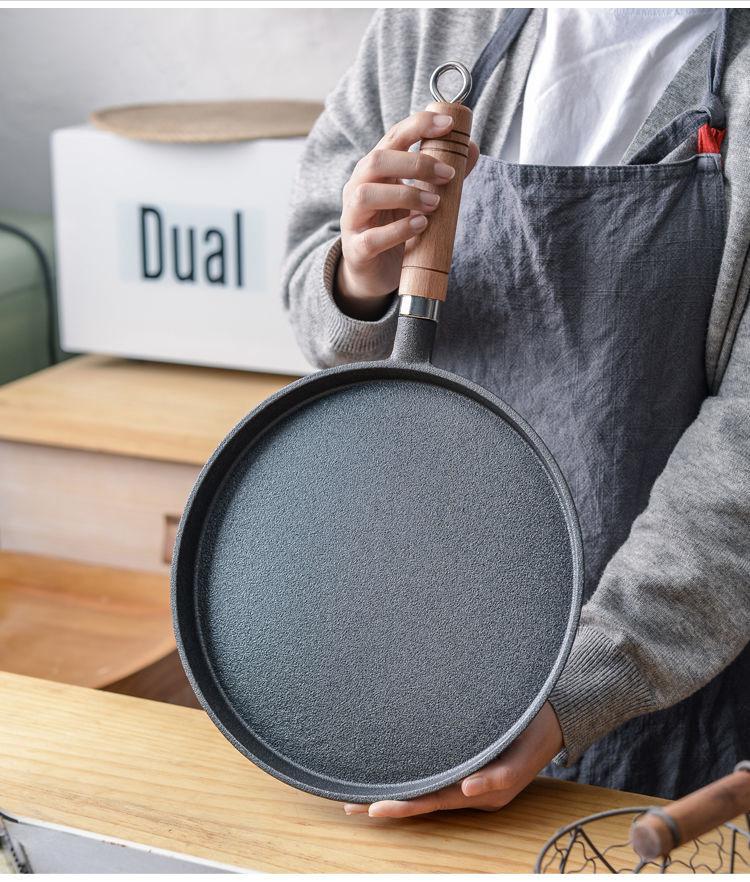 Panela de ferro fundido para uso doméstico Cereais Panqueca Chapa Panela de panqueca de mão Panela de panqueca espessada Panela de panqueca sem revestimento