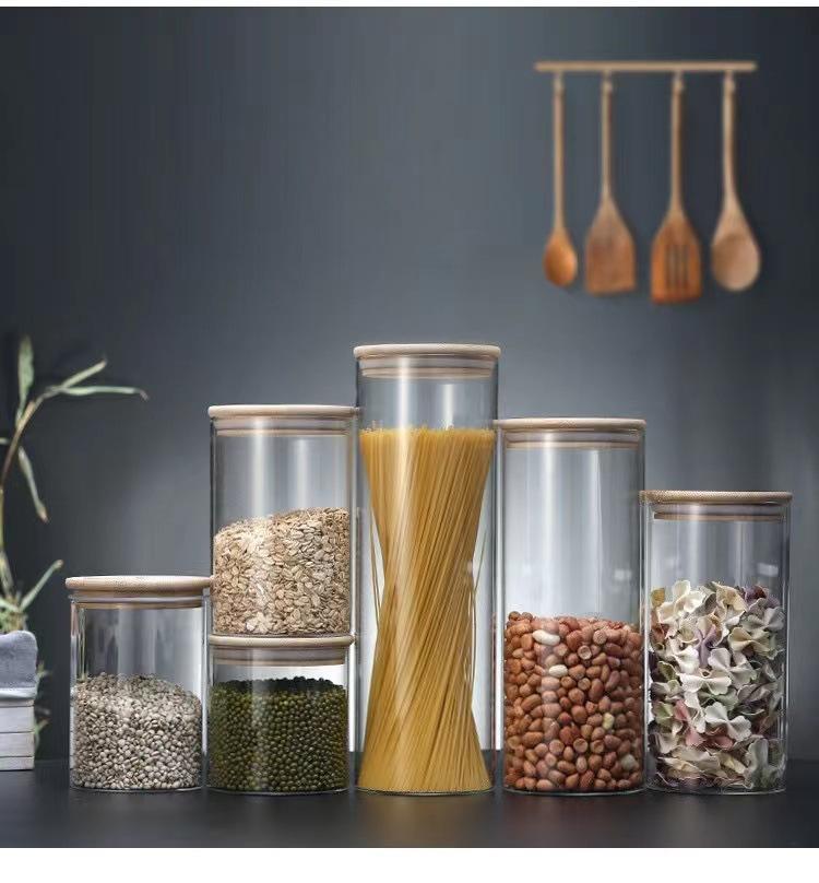 Fornecimento de fábrica frasco de chá frasco selado de vidro frasco de armazenamento de cozinha reta frutas secas lanche garrafa de armazenamento de doces