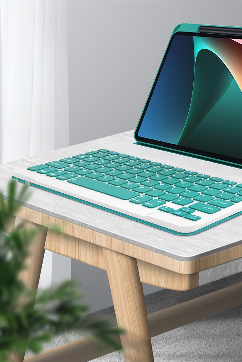 Mint green protective cover + white dimpled keyboard + white Bluetooth mouse