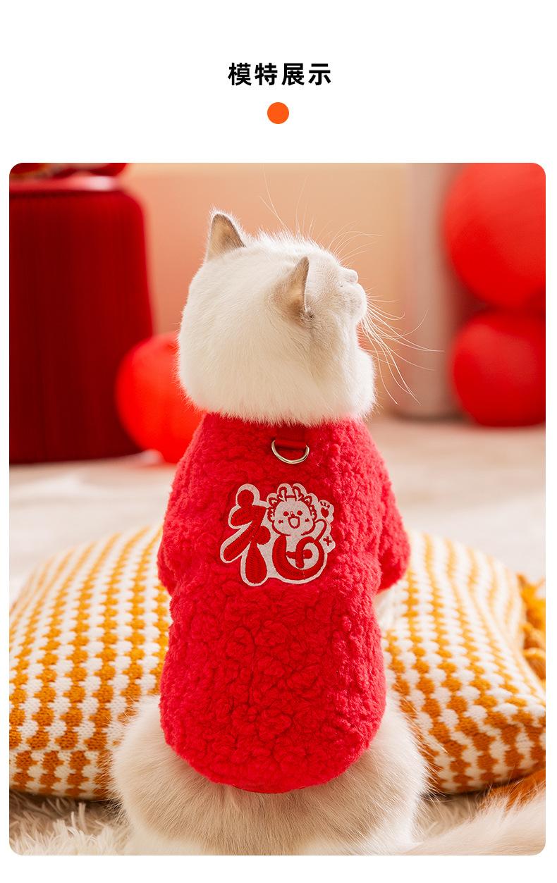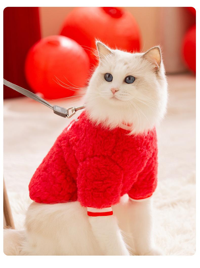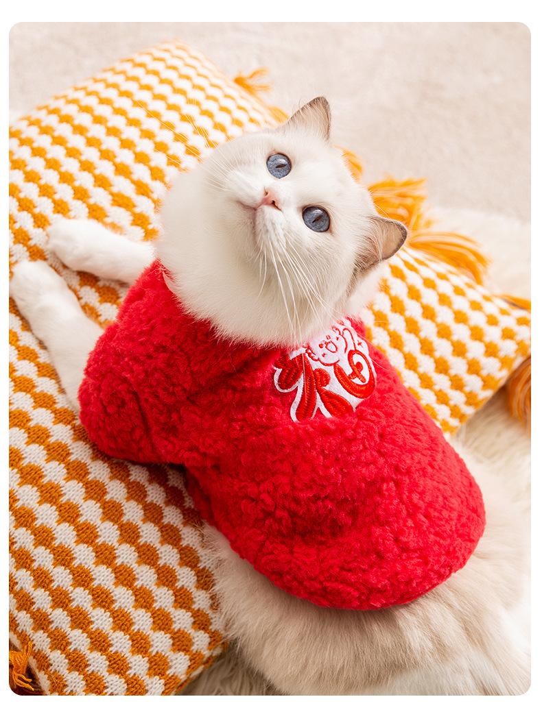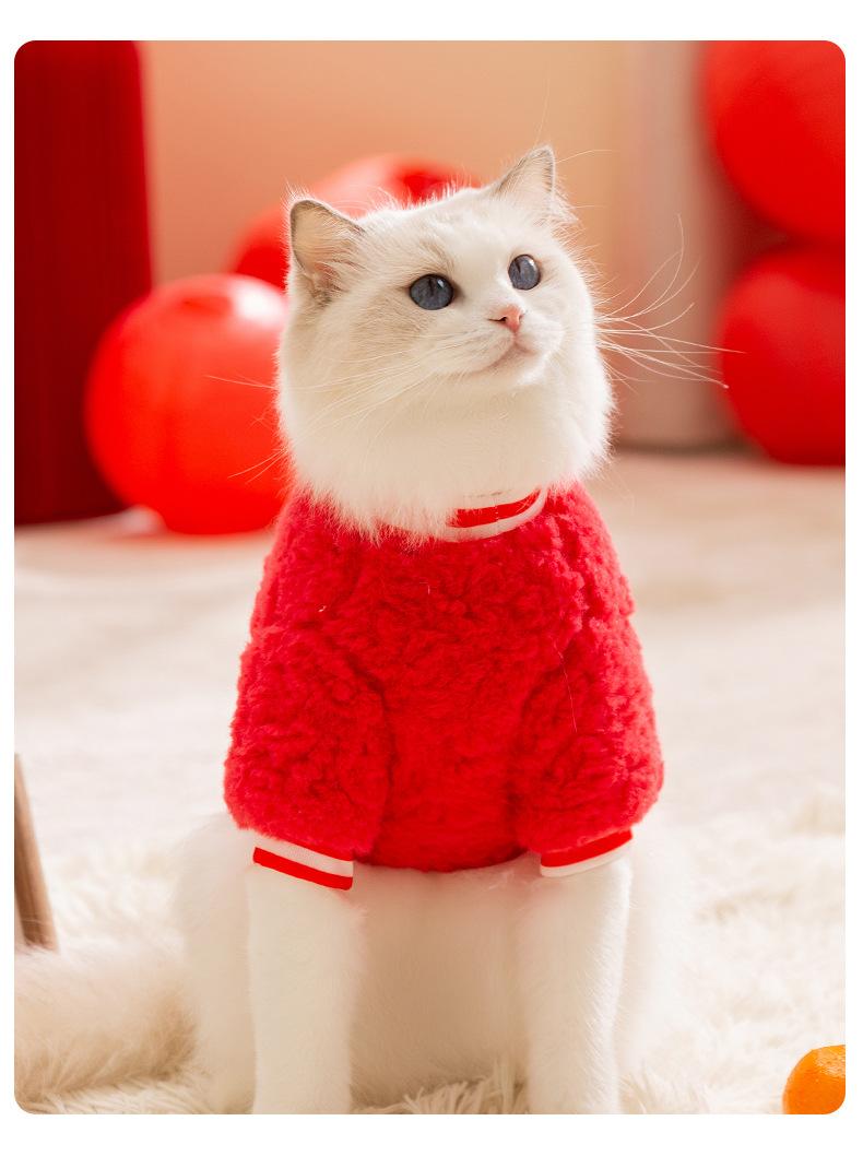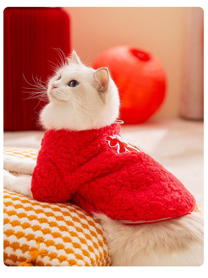 Outono e inverno gato quente sem pêlos gato ano novo festivo ano novo cordeiro lã roupas pequenas e médias roupas para animais de estimação