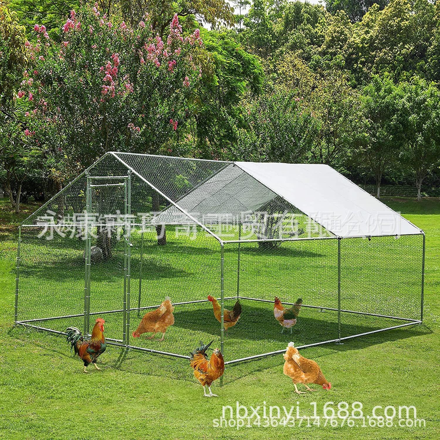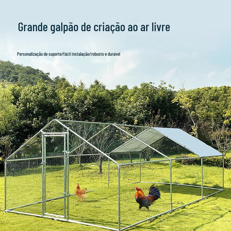Galinheiro Galvanizado com Telhado, Galinheiro Grande para Aves com Escada, Galinheiro Grande Impermeável