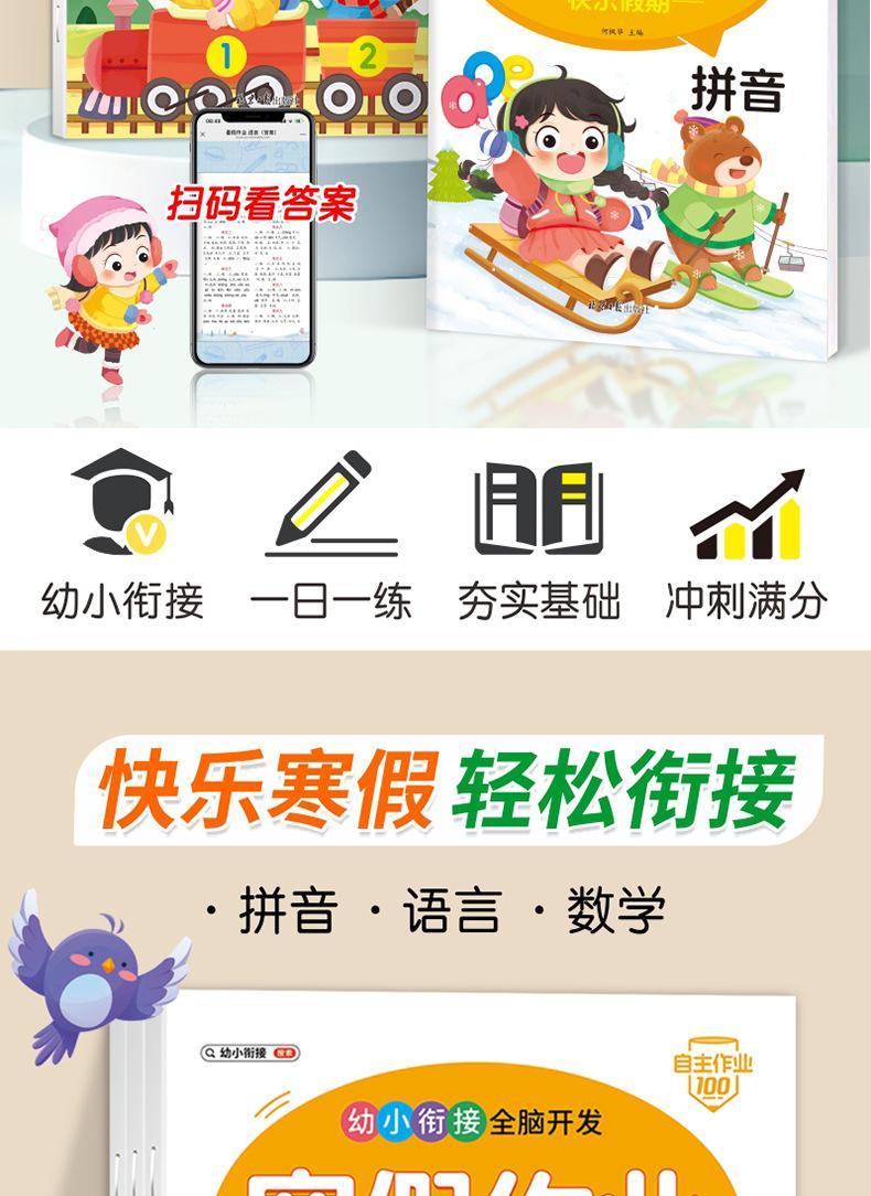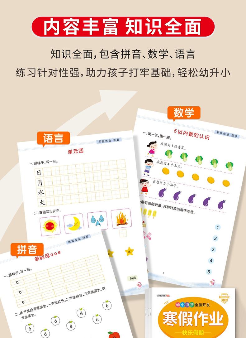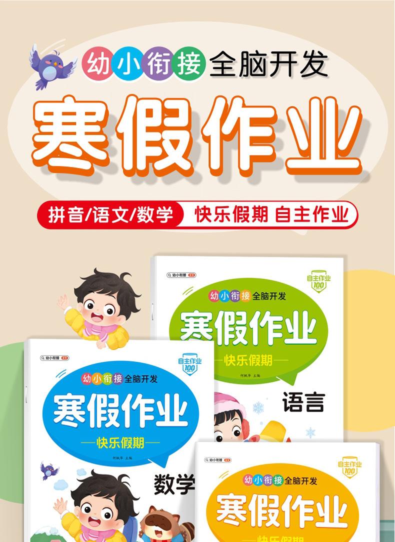 Crianças pequenas se conectam com todo o cérebro para desenvolver perguntas de matemática e idioma pinyin para as tarefas de férias de inverno