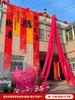 Quintal de casamento rural grande pano pendurado longo personagem feliz decoração quintal de casamento parede casa autoconstruída cena layout sala de casamento