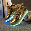 Air Force One Light Shoes Sapatos infantis dourados e prateados Sapatos de cano alto com LED Sapatos com luz de carregamento Sapatos luminosos pretos e brancos Fabricante de calçados esportivos infantis