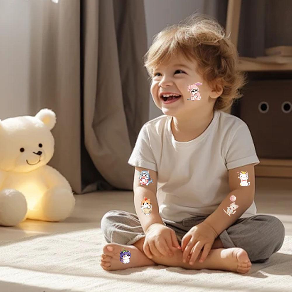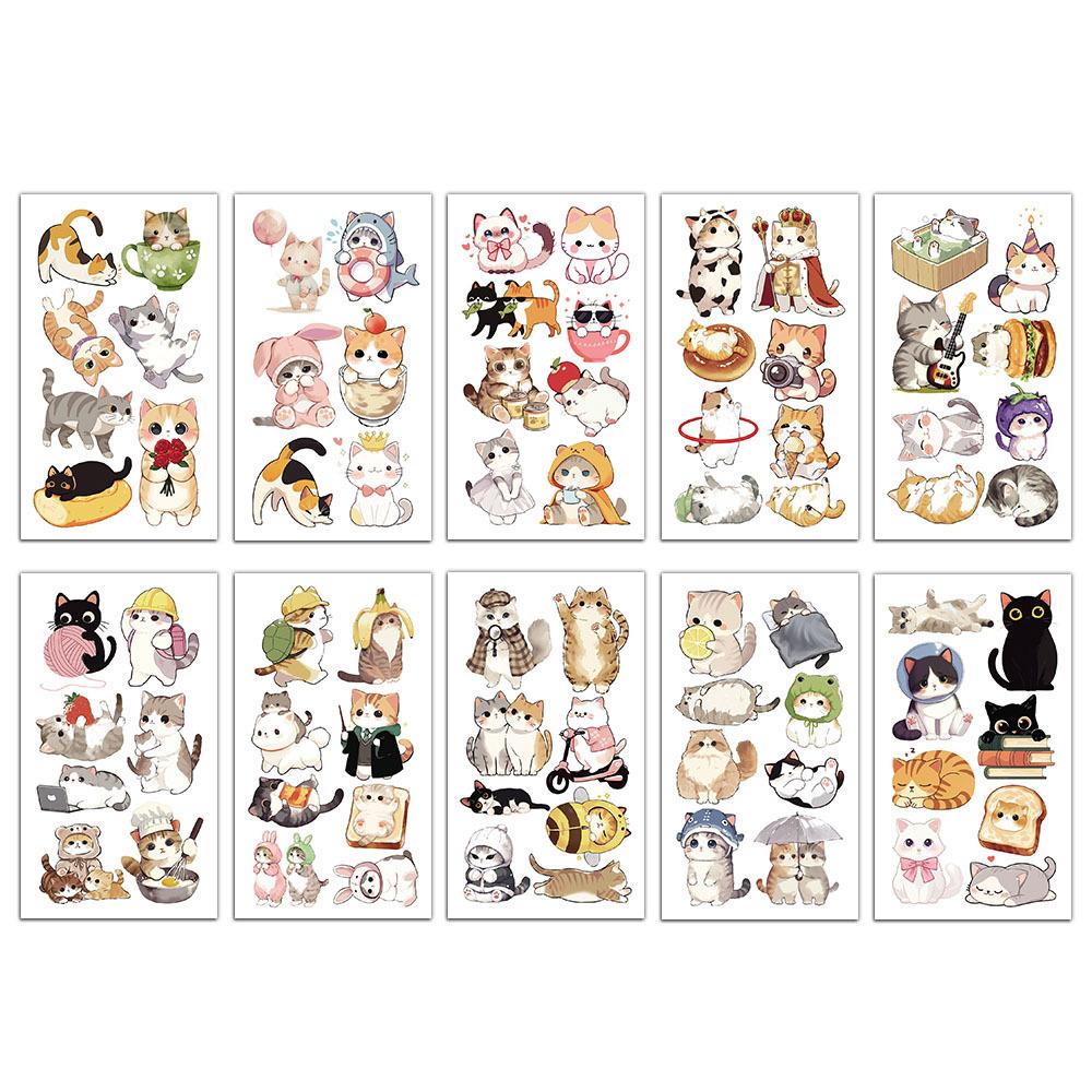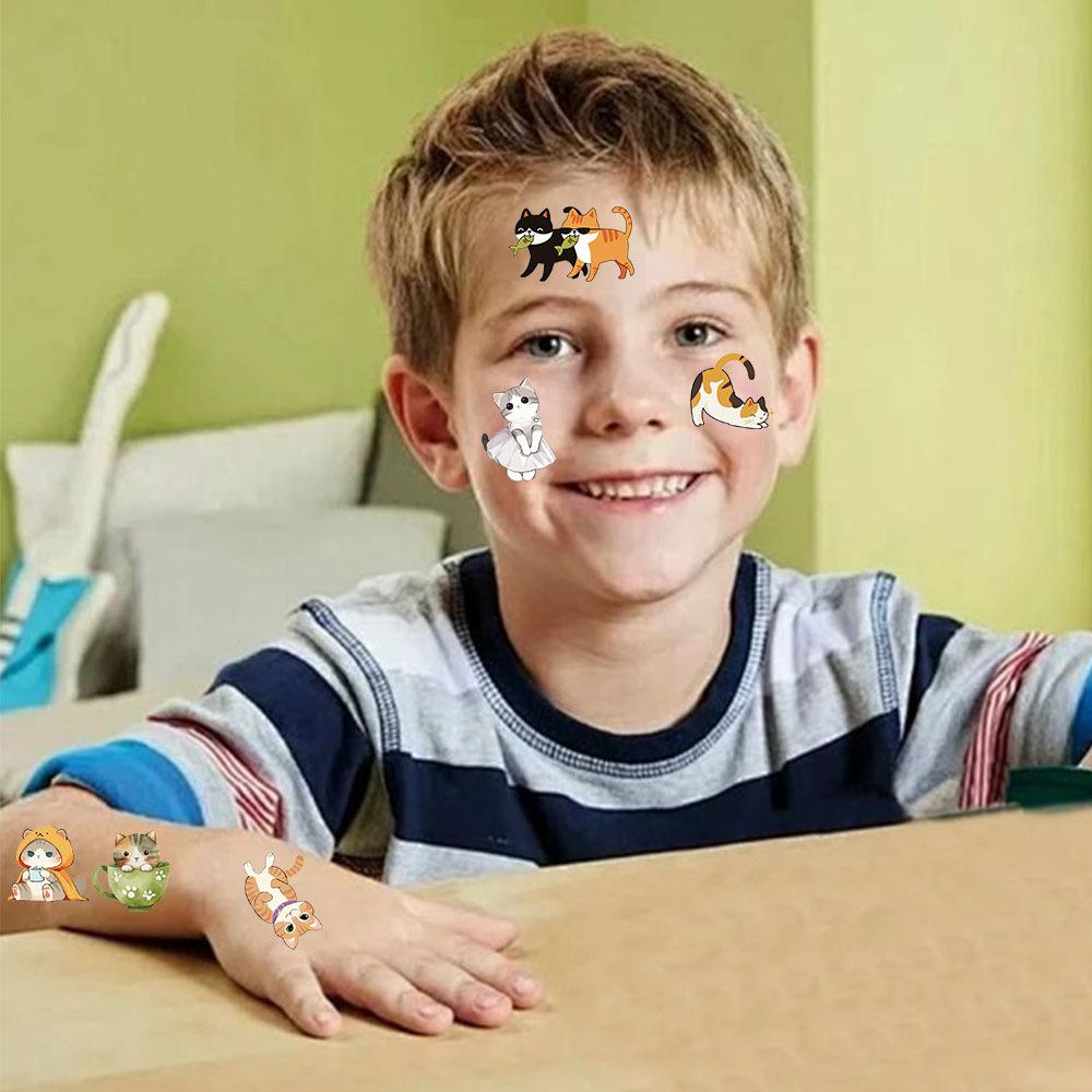 Adesivo de tatuagem de gato fofo de desenho animado transfronteiriço à prova d'água, presente de festa de suor, adesivo de rosto divertido de animal engraçado