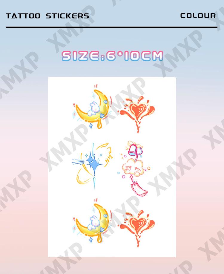 Adesivo de tatuagem colorido de estrela e lua à prova d'água de longa duração para mulheres, braço, clavícula, avançado, fresco, bonito, lavável