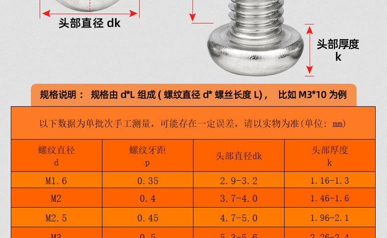 M2*3, M2*4, M2*5, M2*6, M2*8, M2*10, M2*12, M2*14, M2*16, M2*18, M2*20, M2*25, M2.5*3, M2.5*4, M2.5*5, M2.5*6,...