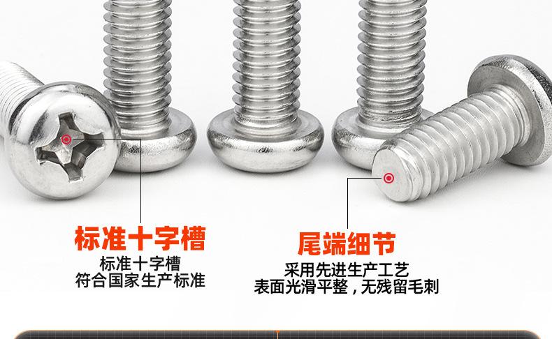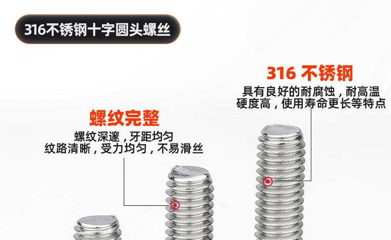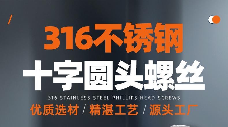 Parafuso de aço inoxidável 316 parafuso de cabeça redonda com recesso cruzado parafuso de cabeça chata parafuso de fio de máquina M2.5M3M4M5M6M8
