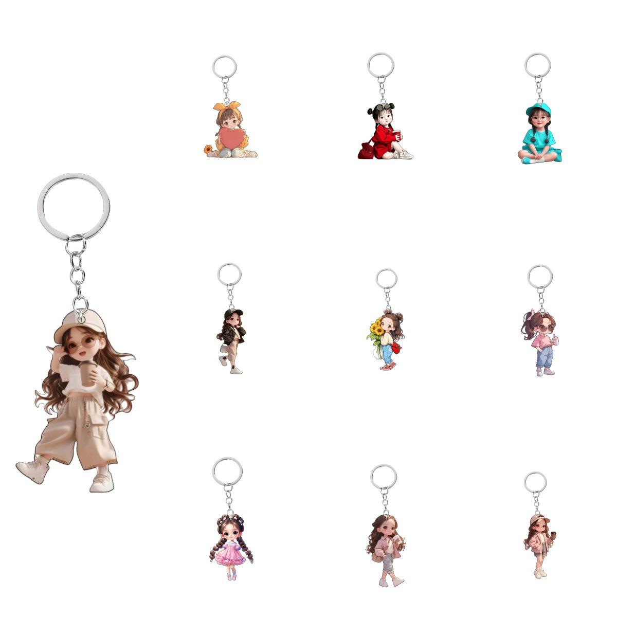 Chaveiro fofo de menina fashion 2D mochila de acrílico plana com design pendurado chaveiro criativo para meninas