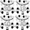 Prata Preto Puxar Bandeira Banner Triângulo Festa de Aniversário 18 21 30 40 50º Aniversário Digital Balão terno