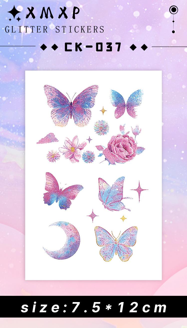 Adesivo de tatuagem de borboleta com glitter, adesivo de fada, lavável, à prova d'água, duradouro, sonhador, pequeno, fresco, bonito, fofo, braço para crianças