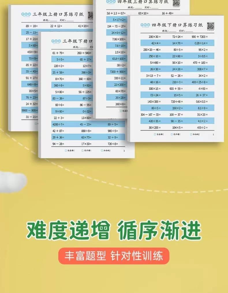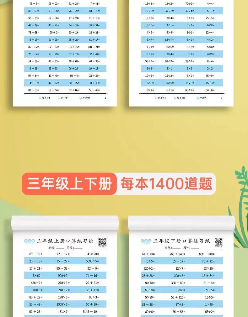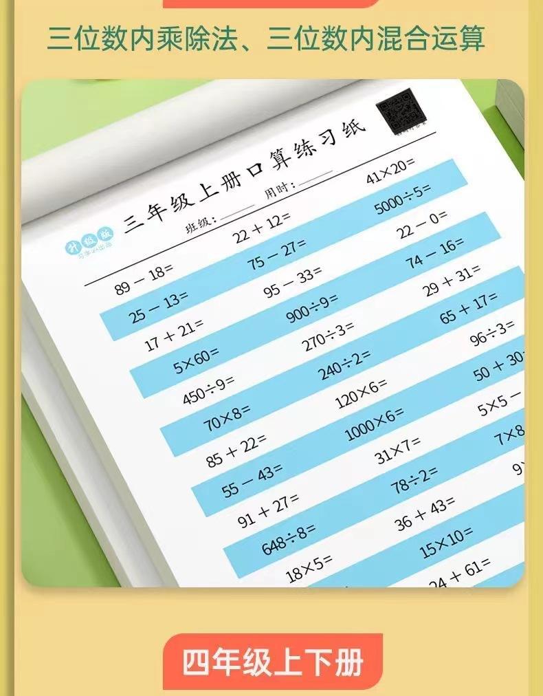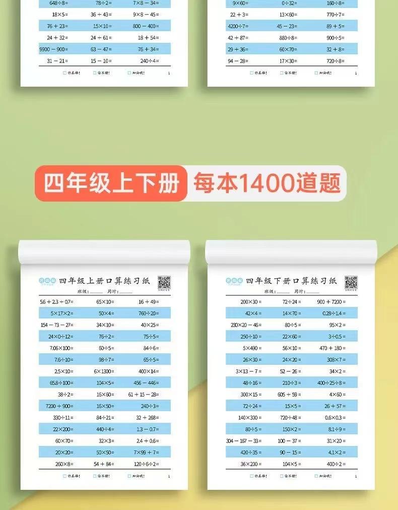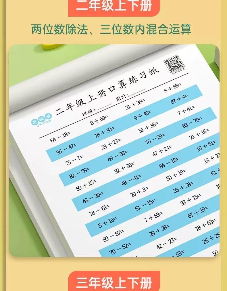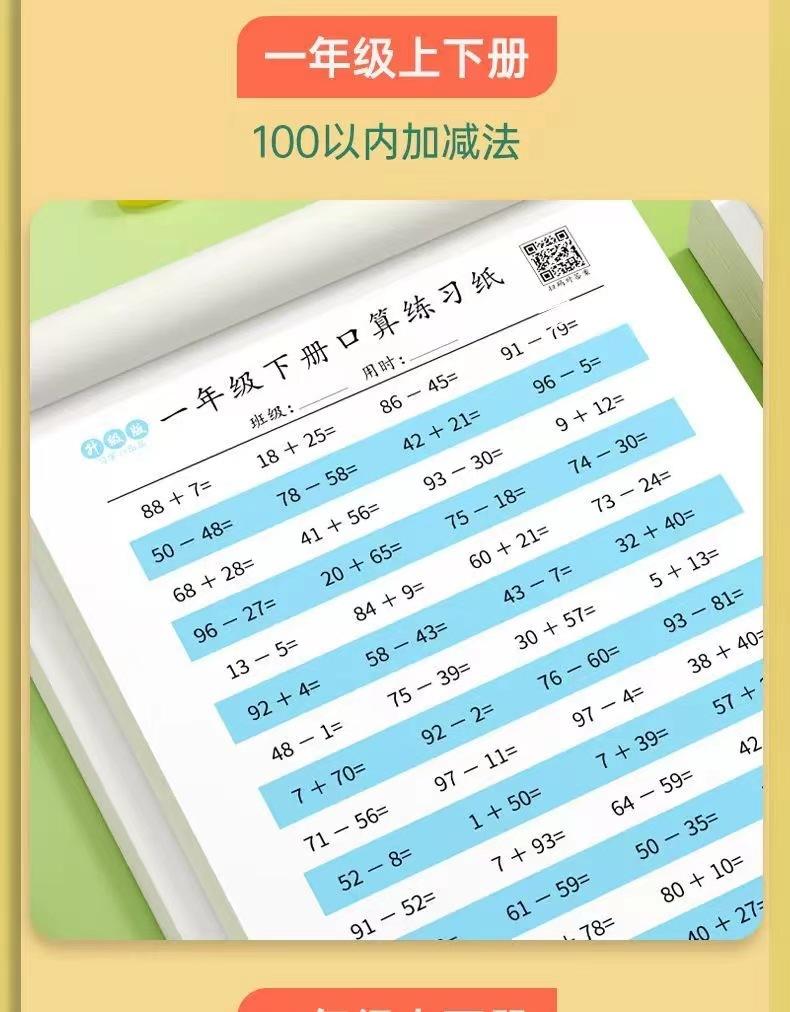 Matemática de papel de exercício de cálculo rápido cálculo oral cartão de problema de cálculo 1234 graus volumes superiores e inferiores dentro de 100 adição e subtração aritmética livro