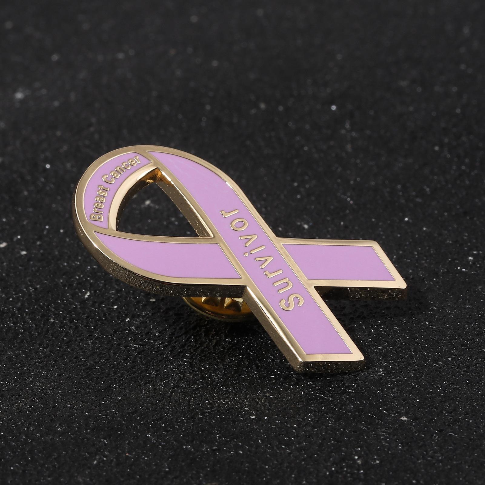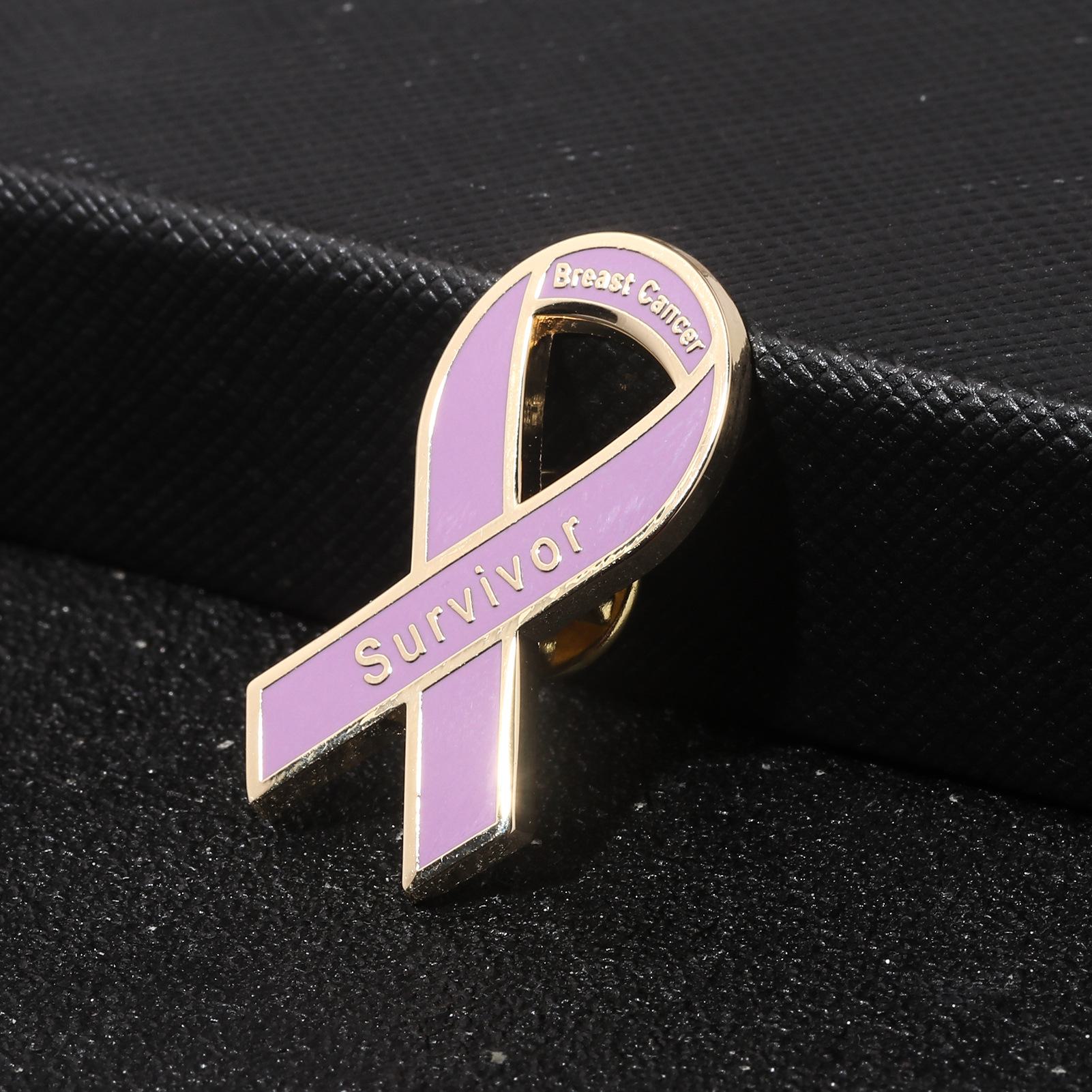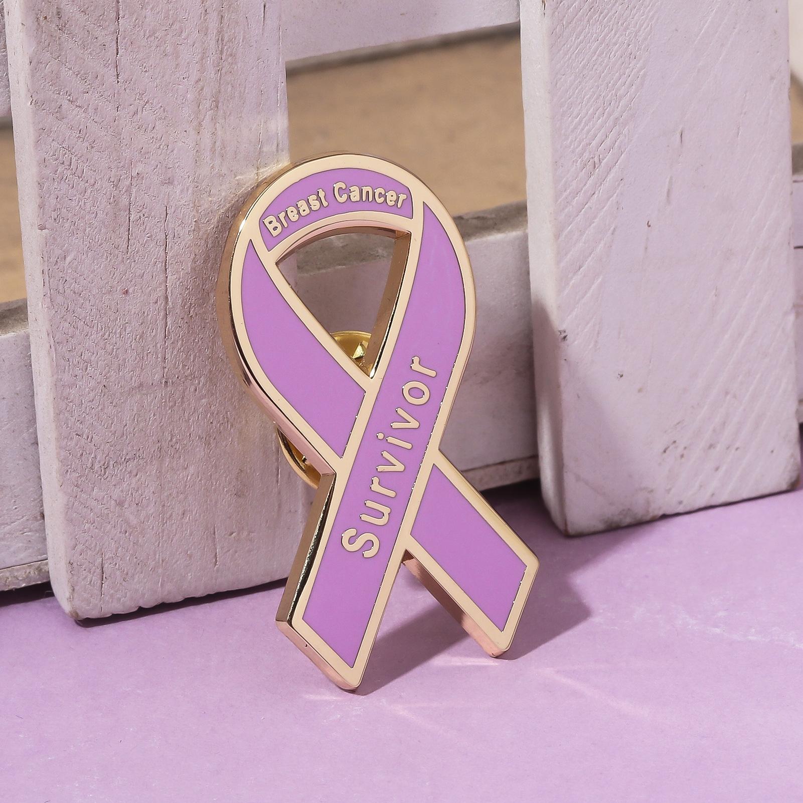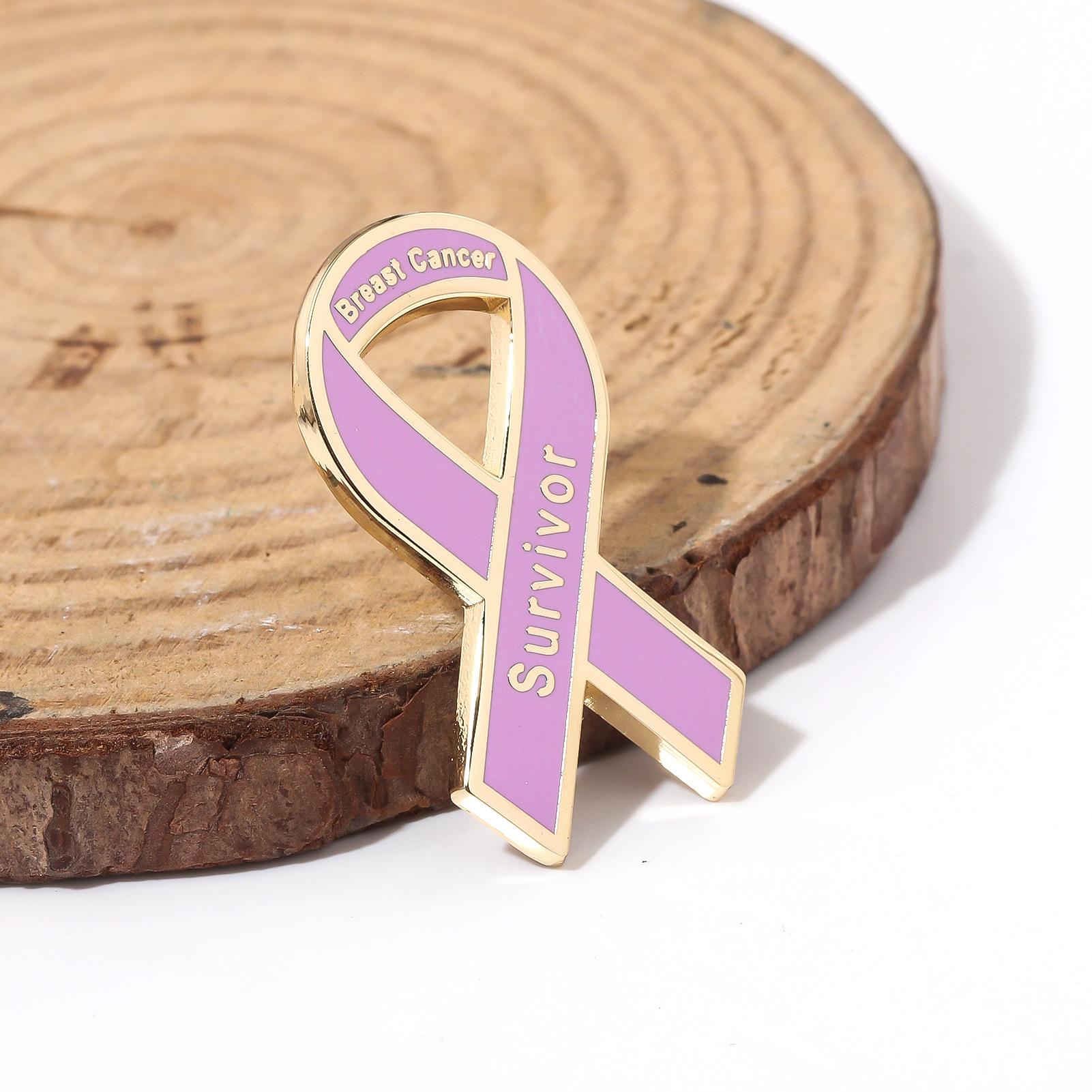 Broche de fita rosa roxa sobrevivente de joias criativas, broche com logotipo do Dia da AIDS, distintivo de esperança, amor e fé