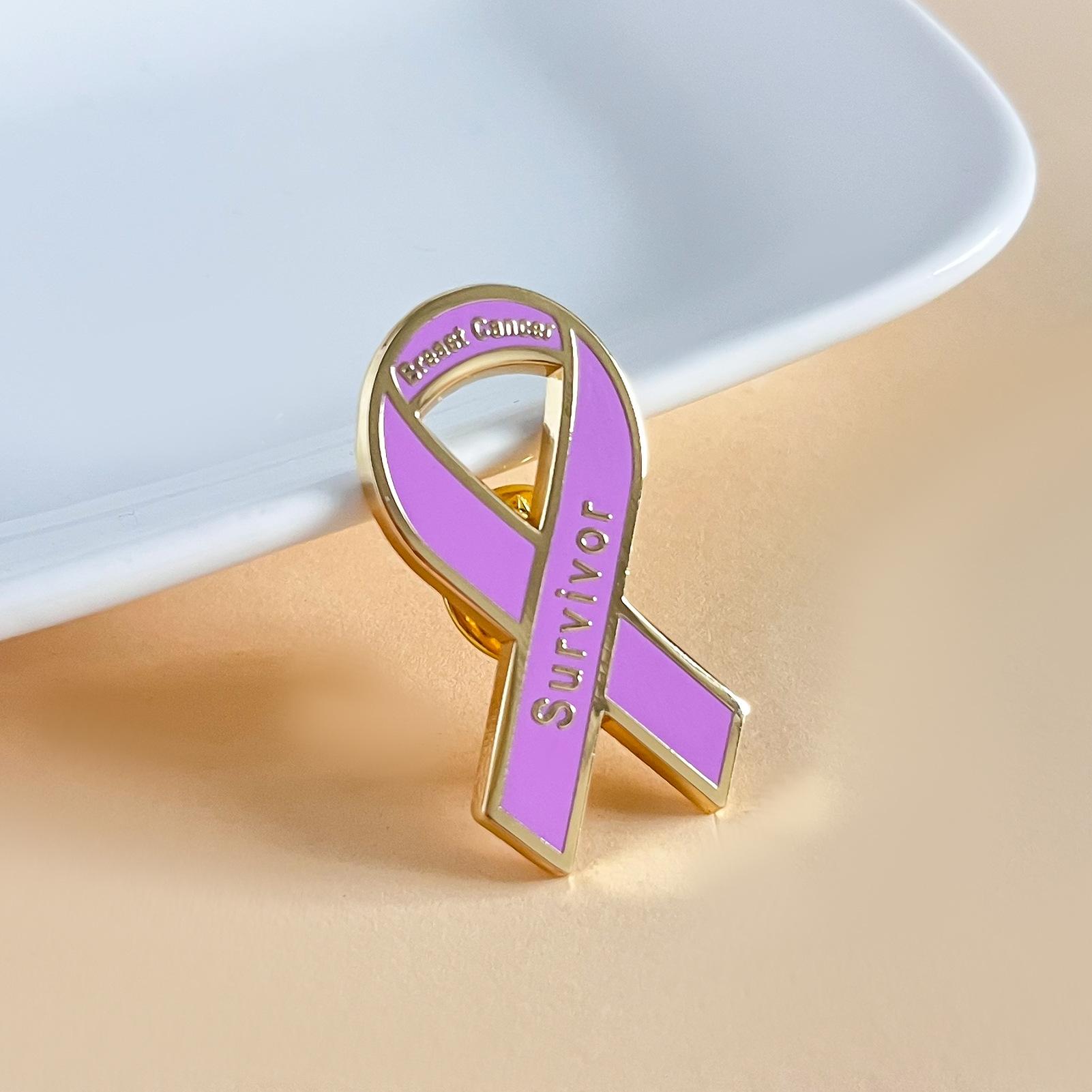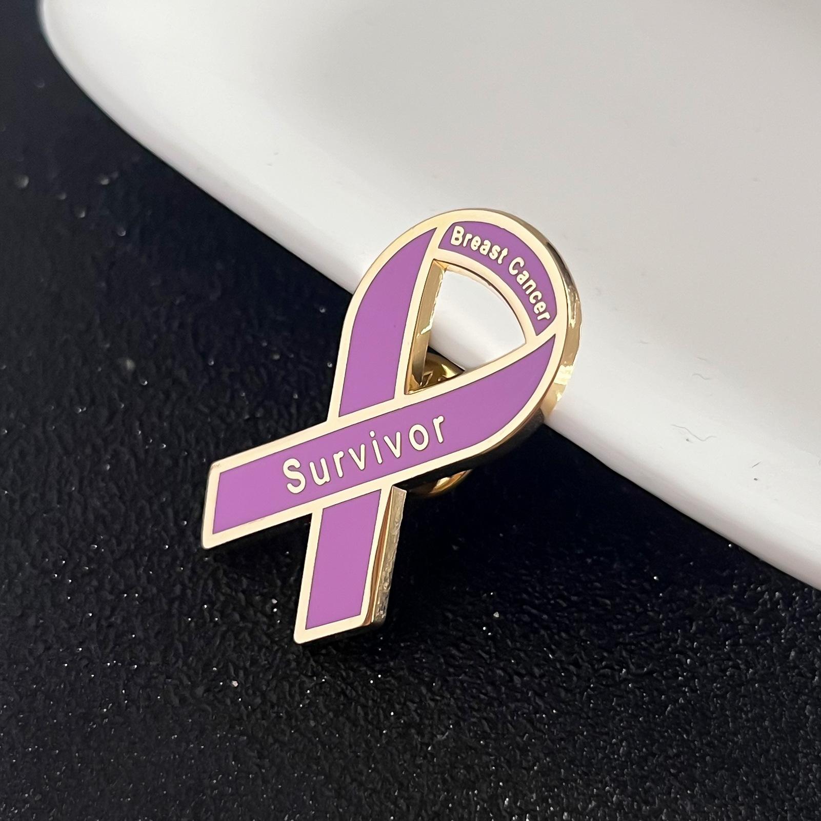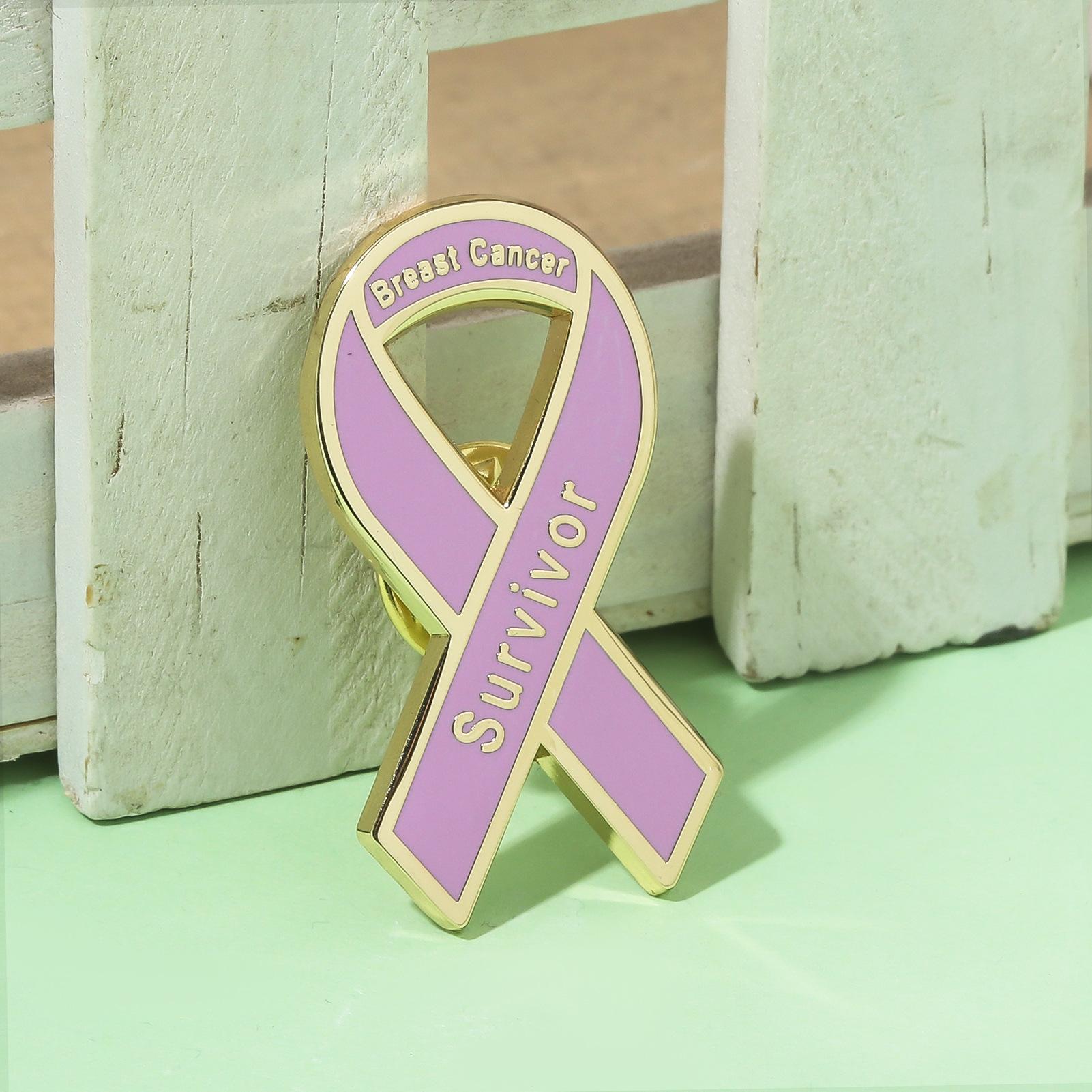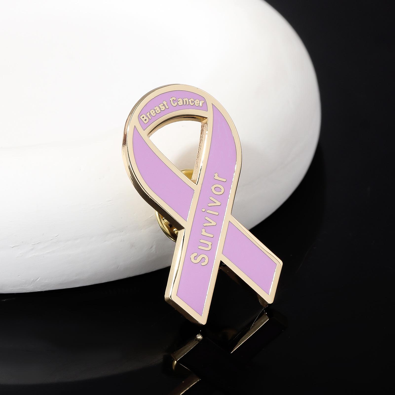 Broche de fita rosa roxa sobrevivente de joias criativas, broche com logotipo do Dia da AIDS, distintivo de esperança, amor e fé