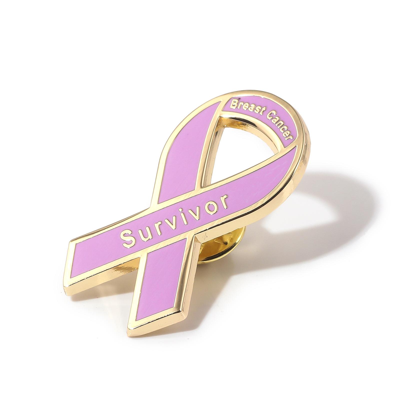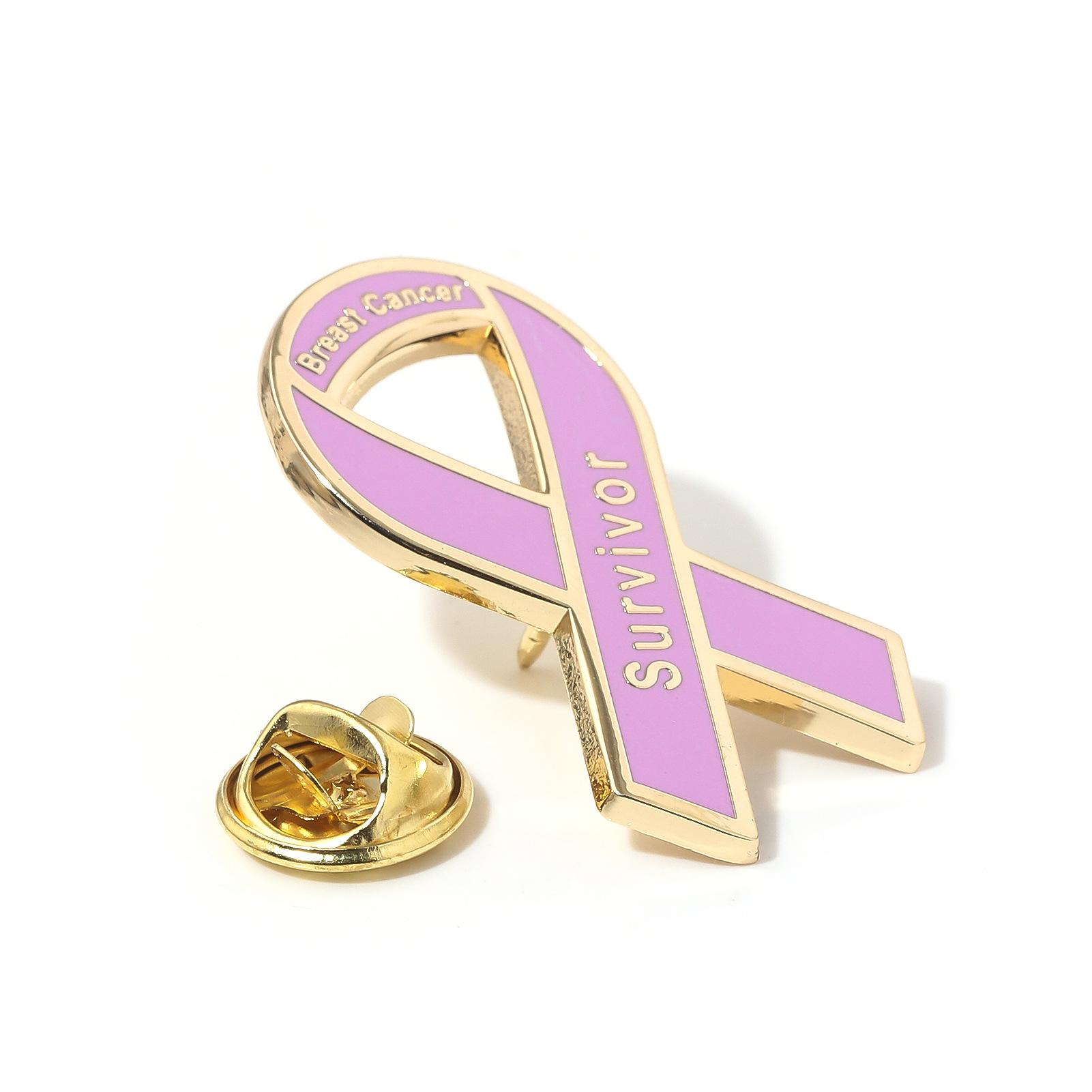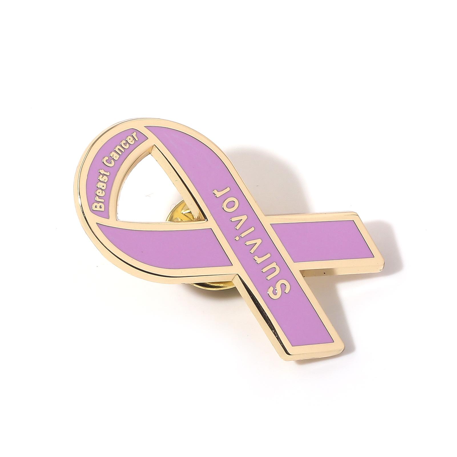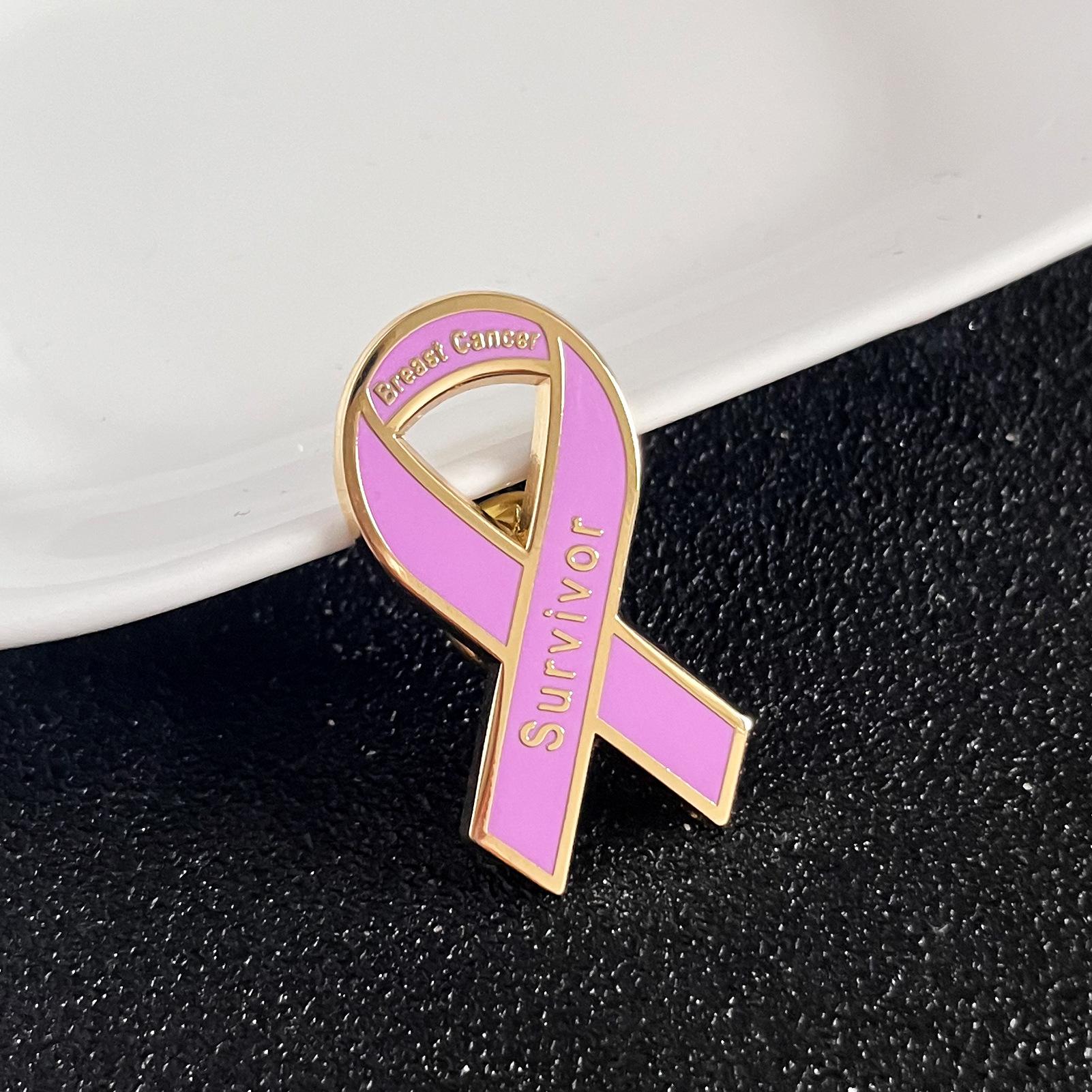 Broche de fita rosa roxa sobrevivente de joias criativas, broche com logotipo do Dia da AIDS, distintivo de esperança, amor e fé