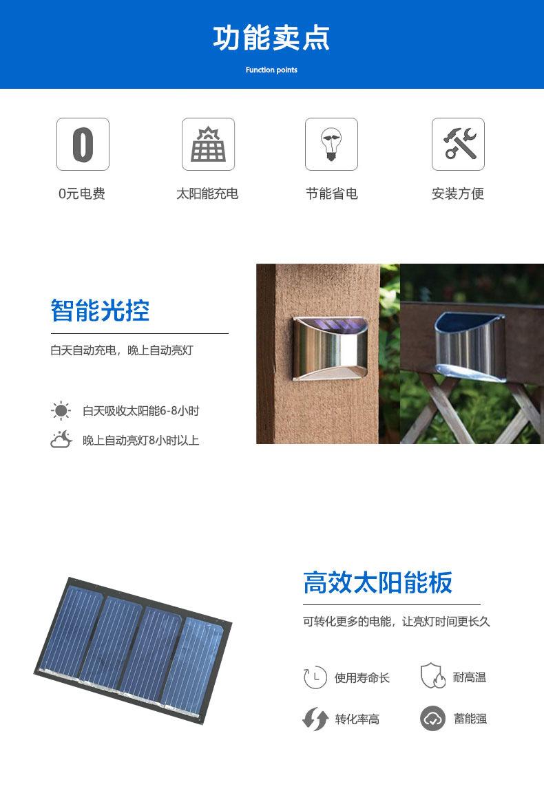 Luminária de parede de indução solar de fronteira externa à prova d'água jardim pátio indução lâmpada de parede de aço inoxidável lâmpada de degrau lâmpada de cerca