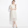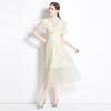 Saia de Renda Francesa Clara e Madura Vazada, Look Emagrecedor na Cintura, Vestido Curto de Manga Curta com Decote Redondo Exterior Transfronteiriço Alto