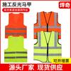 Colete refletivo com logotipo impresso de vários bolsos, aviso de saneamento de trânsito noturno, roupas refletivas, colete refletivo de canteiro de obras