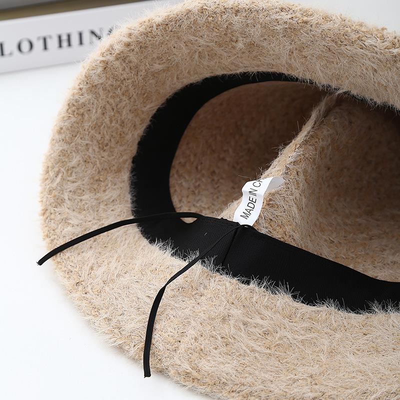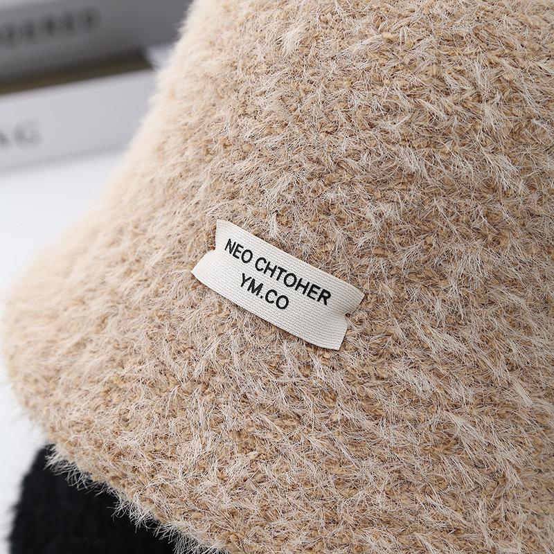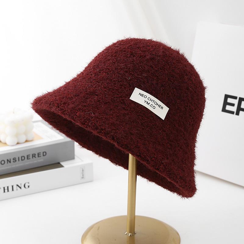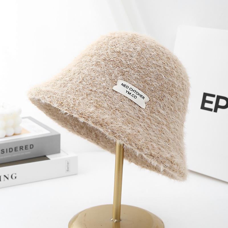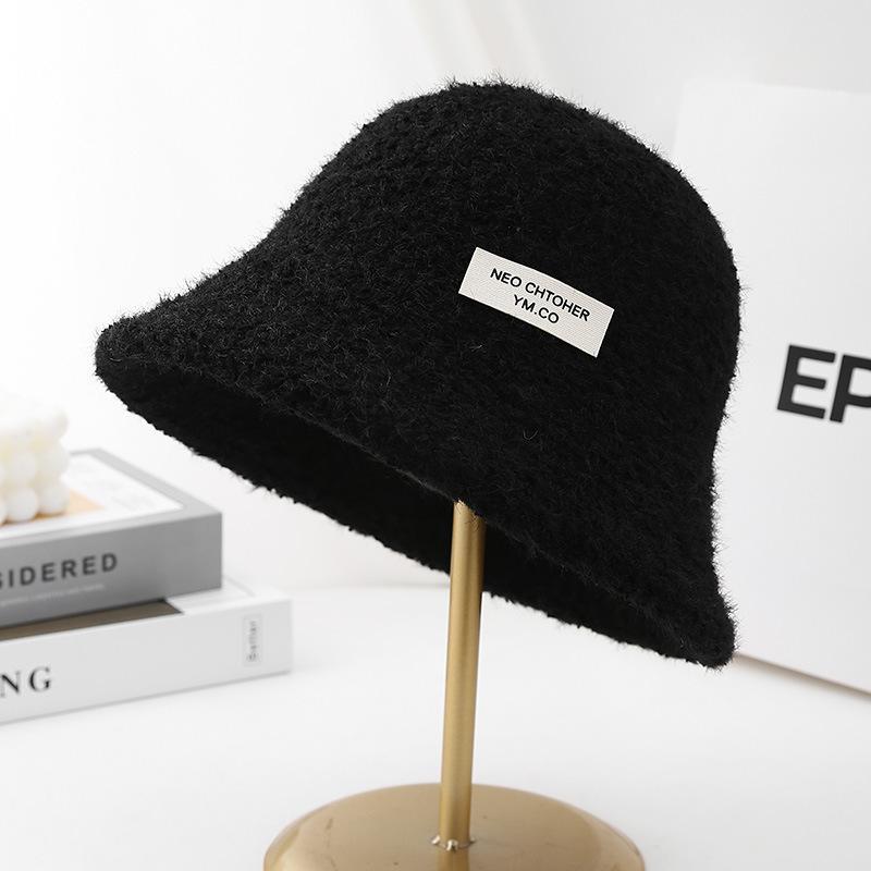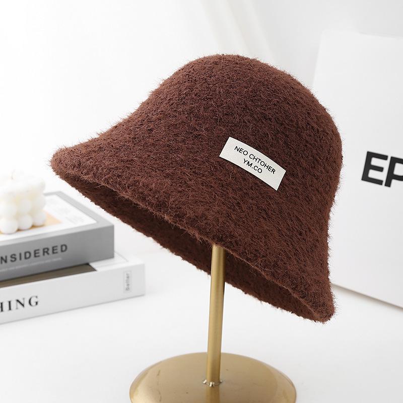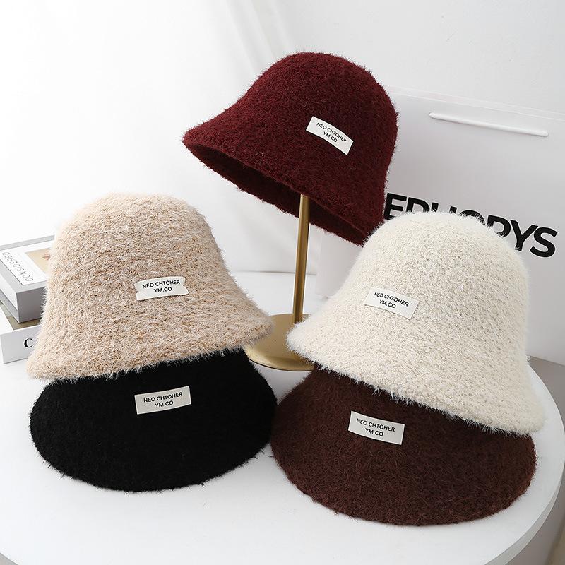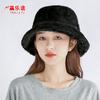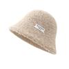 Chapéu de pescador de pelúcia padrão inglês estilo japonês e coreano feminino inverno liso all-match quente rosto mostrando pequeno chapéu de balde peludo