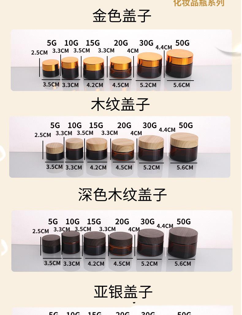Frasco Creme Marrom, Frasco de Vidro à Prova de Luz, Frasco Vazio, Frasco Selado para Amostra Cosmética, Frasco para Creme Facial, Frasco para Creme para Olhos 15g 30g