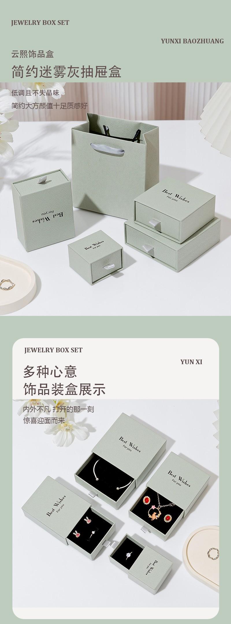 Venda direta da fábrica Caixa de gaveta cinza névoa Caixa de presente Colar Brincos Caixa de embalagem de joias Anel Pulseira Caixa de joias