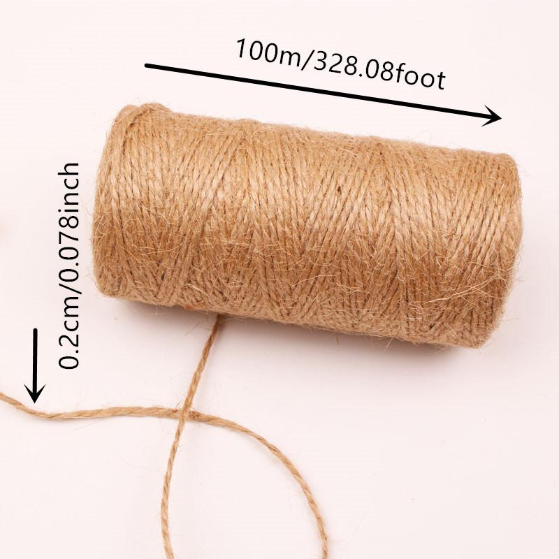 Corda de Cânhamo de 2 Fios Transfronteiriça Cilíndrica DIY Feita à Mão Tecelagem de Corda Corda de Cânhamo Embalagem Corda de Amarração Linho Corda de Cânhamo Grossa 100m