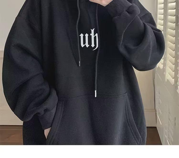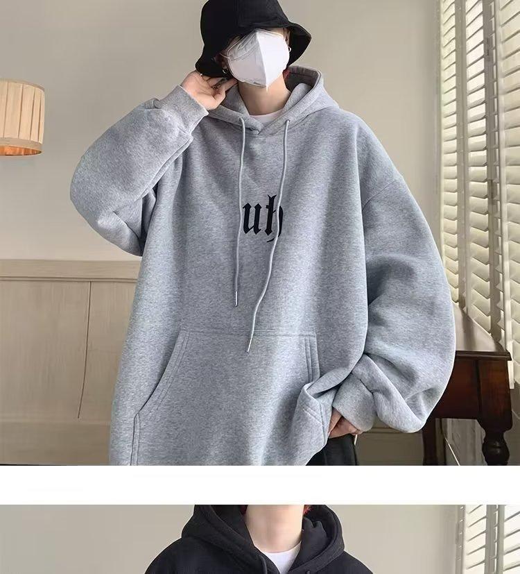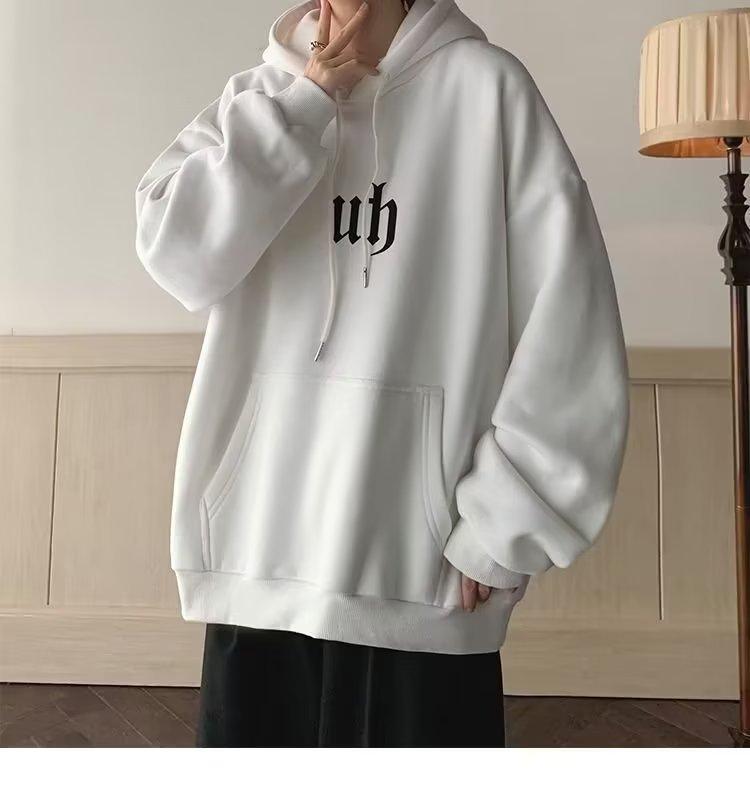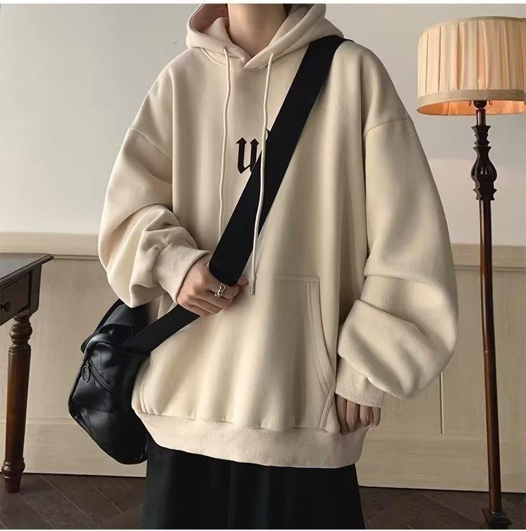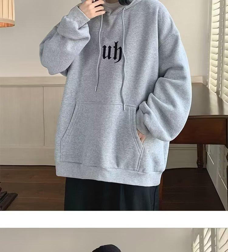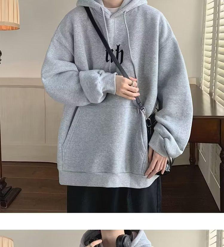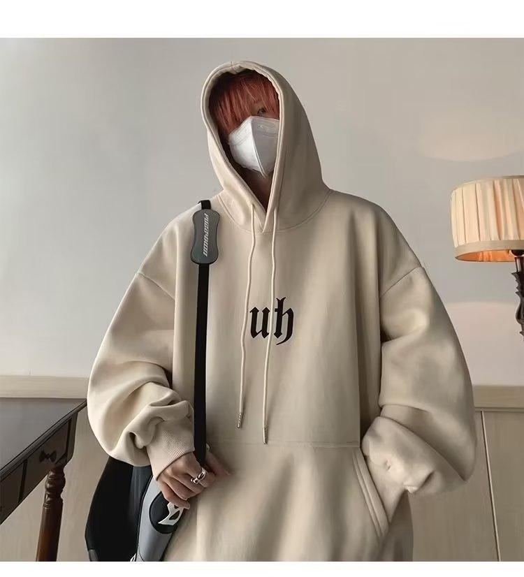 Moletom com capuz Moda Marca Solto 2024 Novo Outono e Inverno Pesado Americano oversize forrado de lã Casaco com capuz
