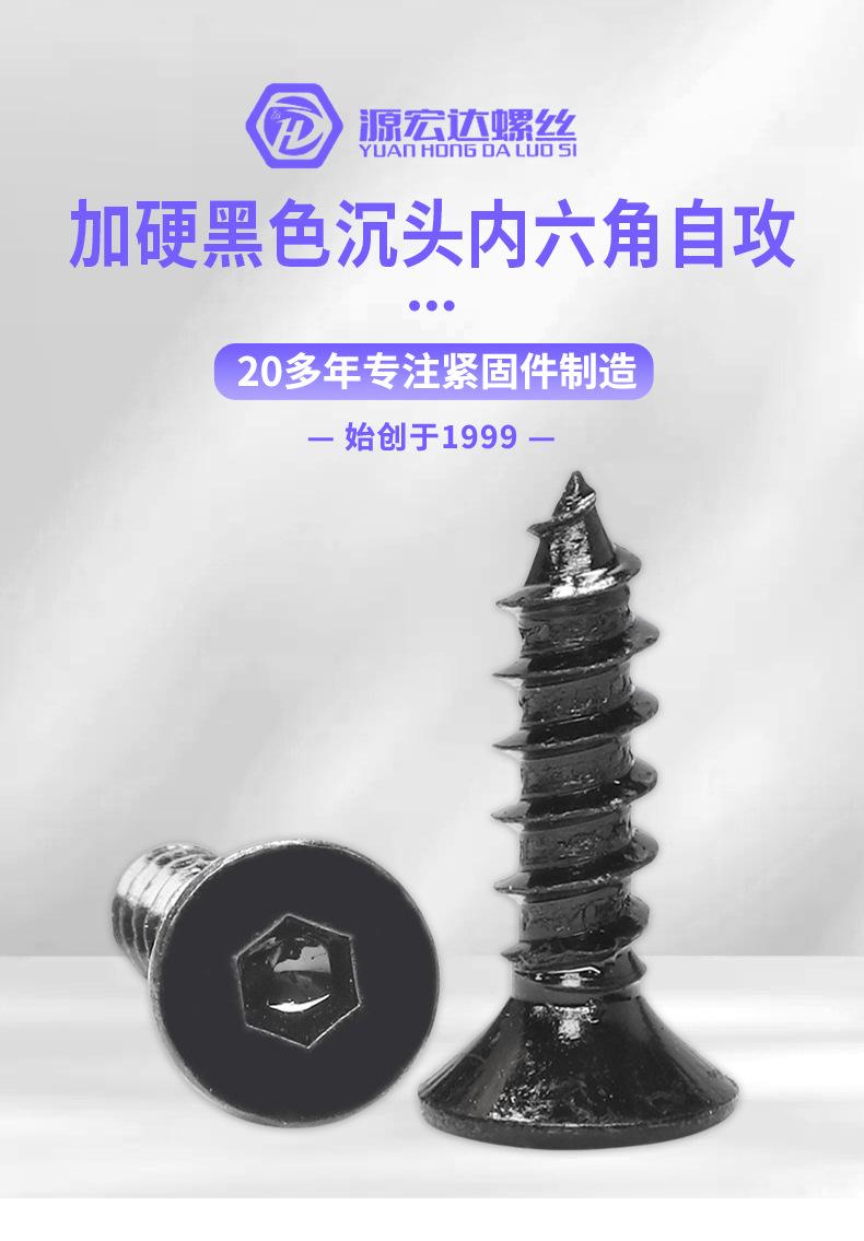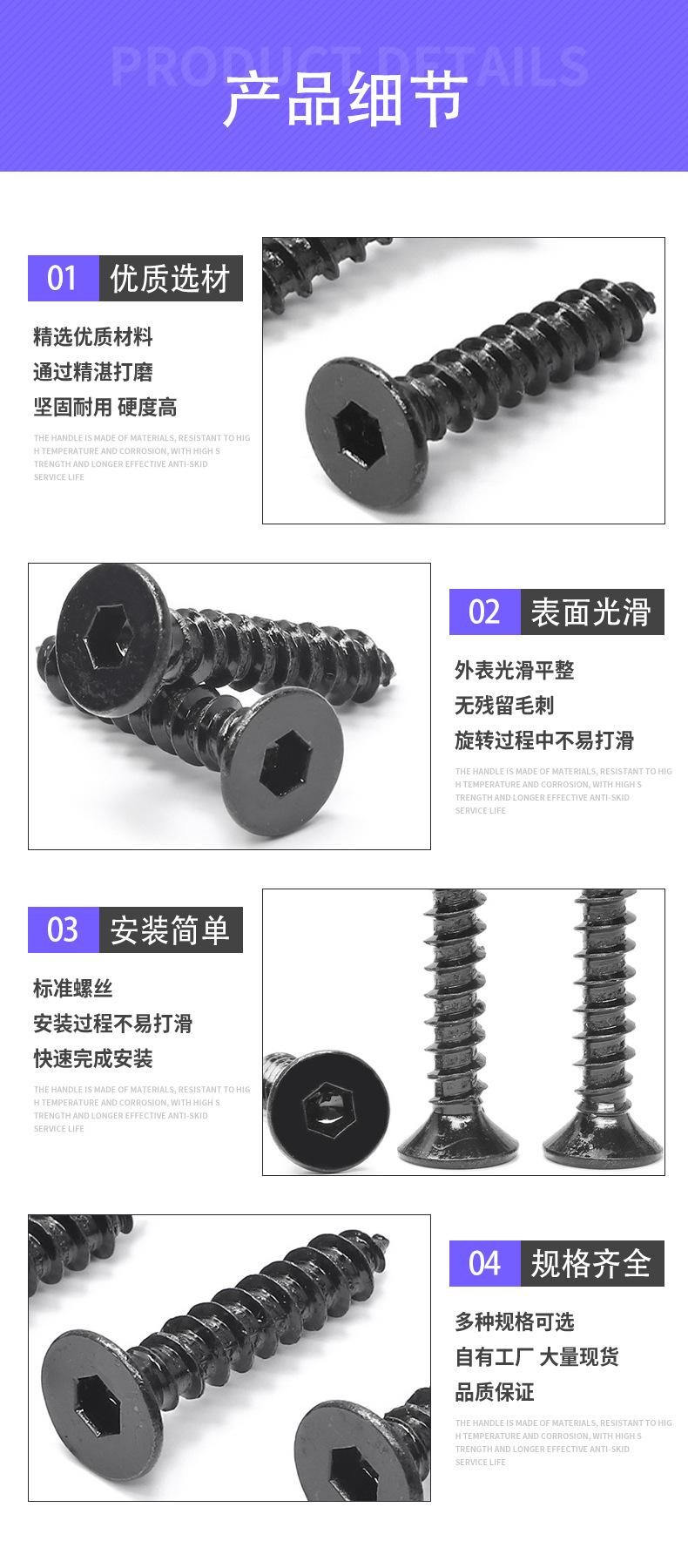 Parafuso auto-roscante sextavado de cabeça escareada preta de alta resistência de grau 8.8, parafuso auto-roscante sextavado de cabeça plana M3/M4/M6