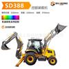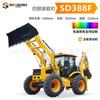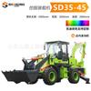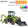 Duas retroescavadeiras ocupadas, engenharia hidráulica completa, empilhadeira a diesel, pá frontal, escavação traseira, carregador integrado