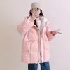 Jaqueta de Algodão com Penas Feminina Inverno Design de Nicho Jaqueta de Algodão 2025 Nova Jaqueta de Algodão Oversize Jaqueta de Comprimento Médio