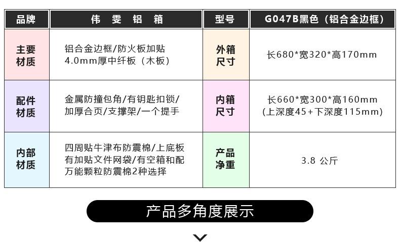 Caixa de modelo de instrumento portátil de liga de alumínio Caixa de armazenamento de ferramentas de hardware Exibição de amostra Material Cabeça Caixa retangular de alumínio