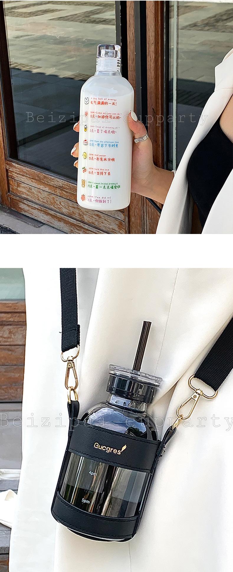 Atacado Copo de Palha Simples de Grande Capacidade Copo de Água de Vidro Alça À Prova de Vazamentos Garrafa de Água Resistente a Alta Temperatura Escola Bebida Fria Leite