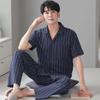 Compre Pijama 100% algodão puro masculino primavera e outono calças de manga comprida algodão puro juventude fino masculino terno de casa no atacado no Joom.pro