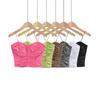 Estilo americano puro desejo garota quente design plissado elástico fino emagrecimento elástico curto camisola top