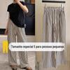 Calças femininas pequenas com cordão estilo preguiçoso, listradas, largas, para o verão, 150, cintura alta, soltas, emagrecedoras, retas, casuais