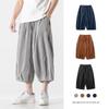 2023 Verão Novo Estilo Chinês Tamanho Grande Algodão e Linho Calças Casuais Masculinas Soltas Retas Calças Harlan de Perna Larga Calças Masculinas de Meio Comprimento