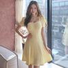 Transfronteiriço 2025 Estilo Coreano Verão Novo Estilo Celebridade Decote Quadrado Manga Bufante Vestido Slim Saia Curta Babados Saia Linha A