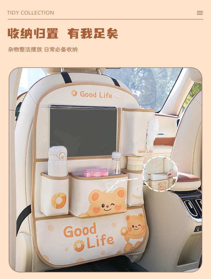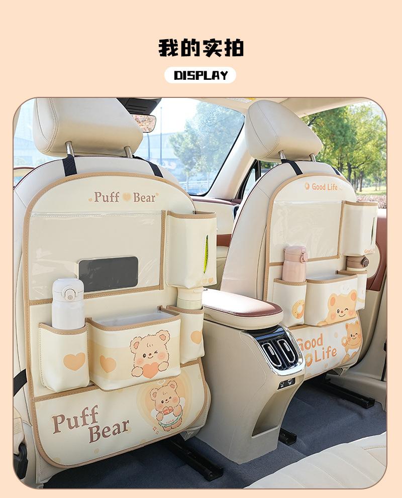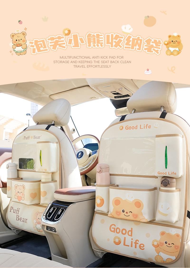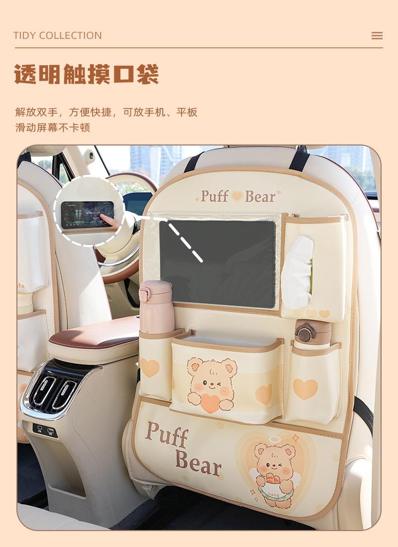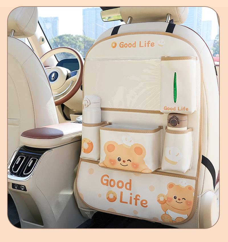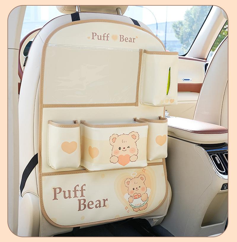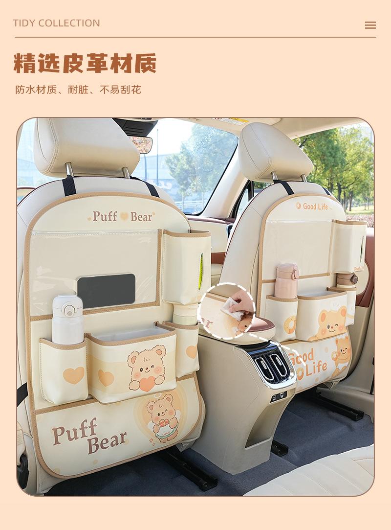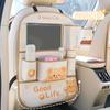 Bolsa de armazenamento para assento traseiro de carro com desenho animado Bolsa de couro multifuncional para pendurar, bolsa de armazenamento para assento prática e fofa