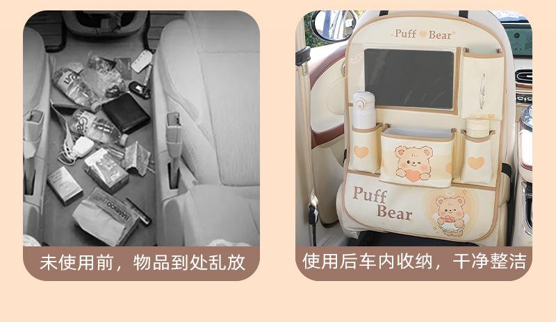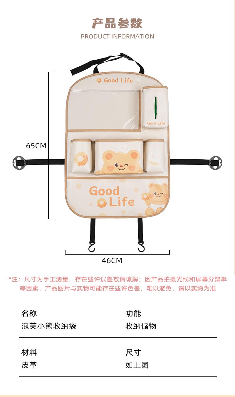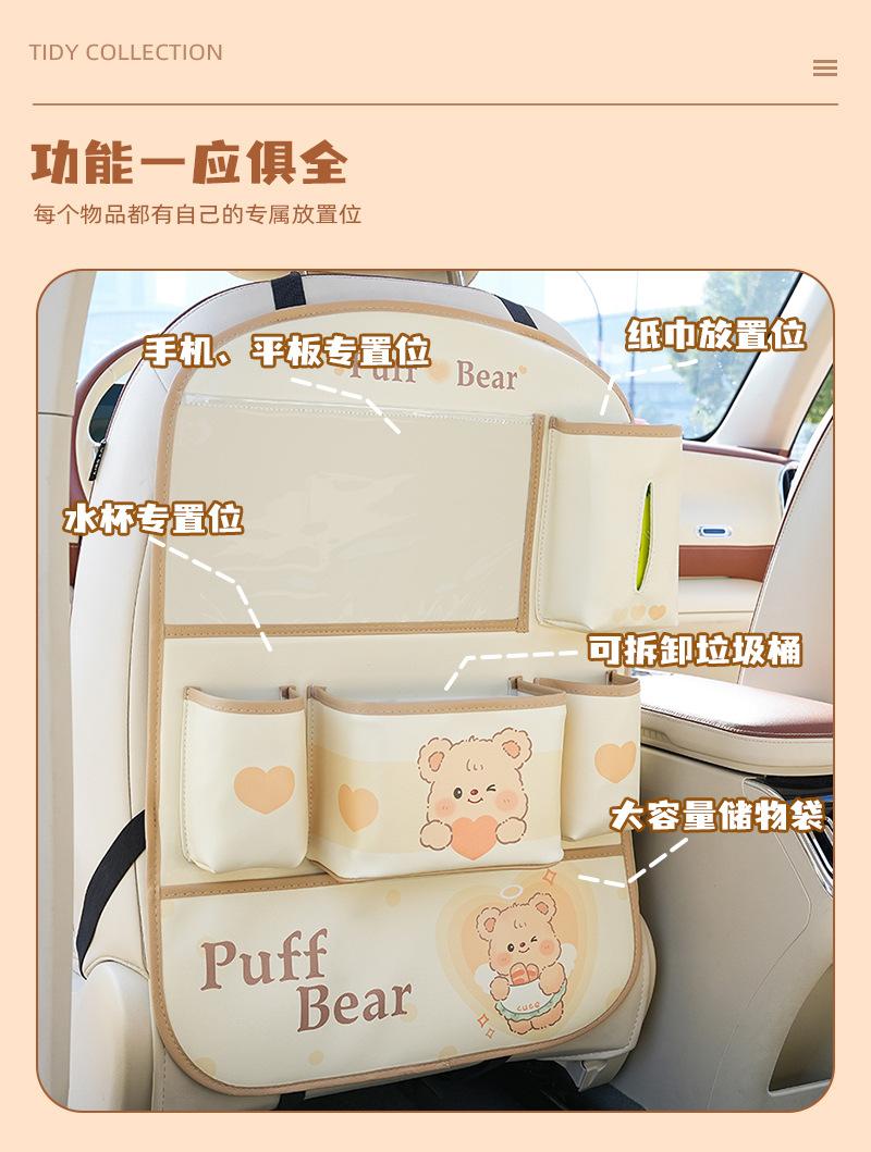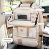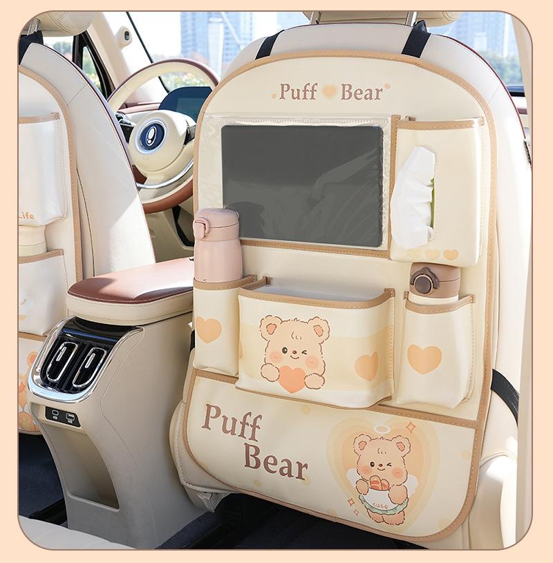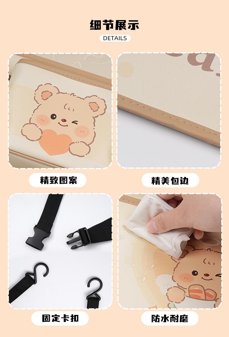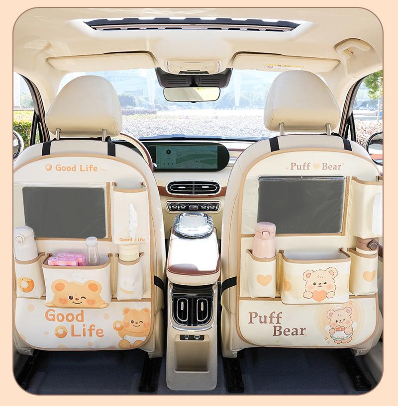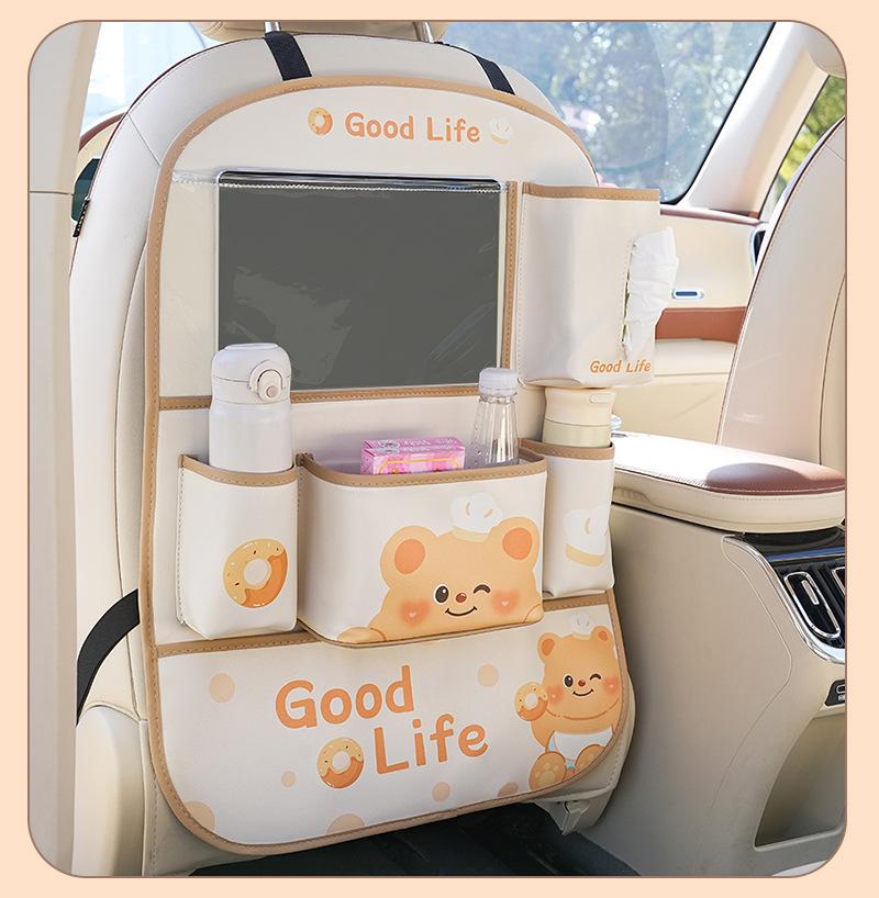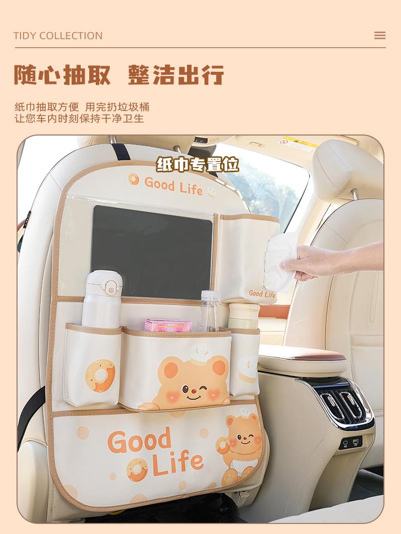 Bolsa de armazenamento para assento traseiro de carro com desenho animado Bolsa de couro multifuncional para pendurar, bolsa de armazenamento para assento prática e fofa
