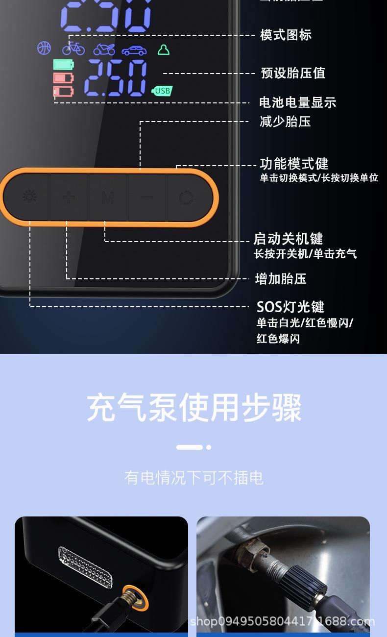 Mini bicicleta portátil bomba de pneu elétrico do carro bomba de ar portátil sem fio de carregamento do carro bomba de ar