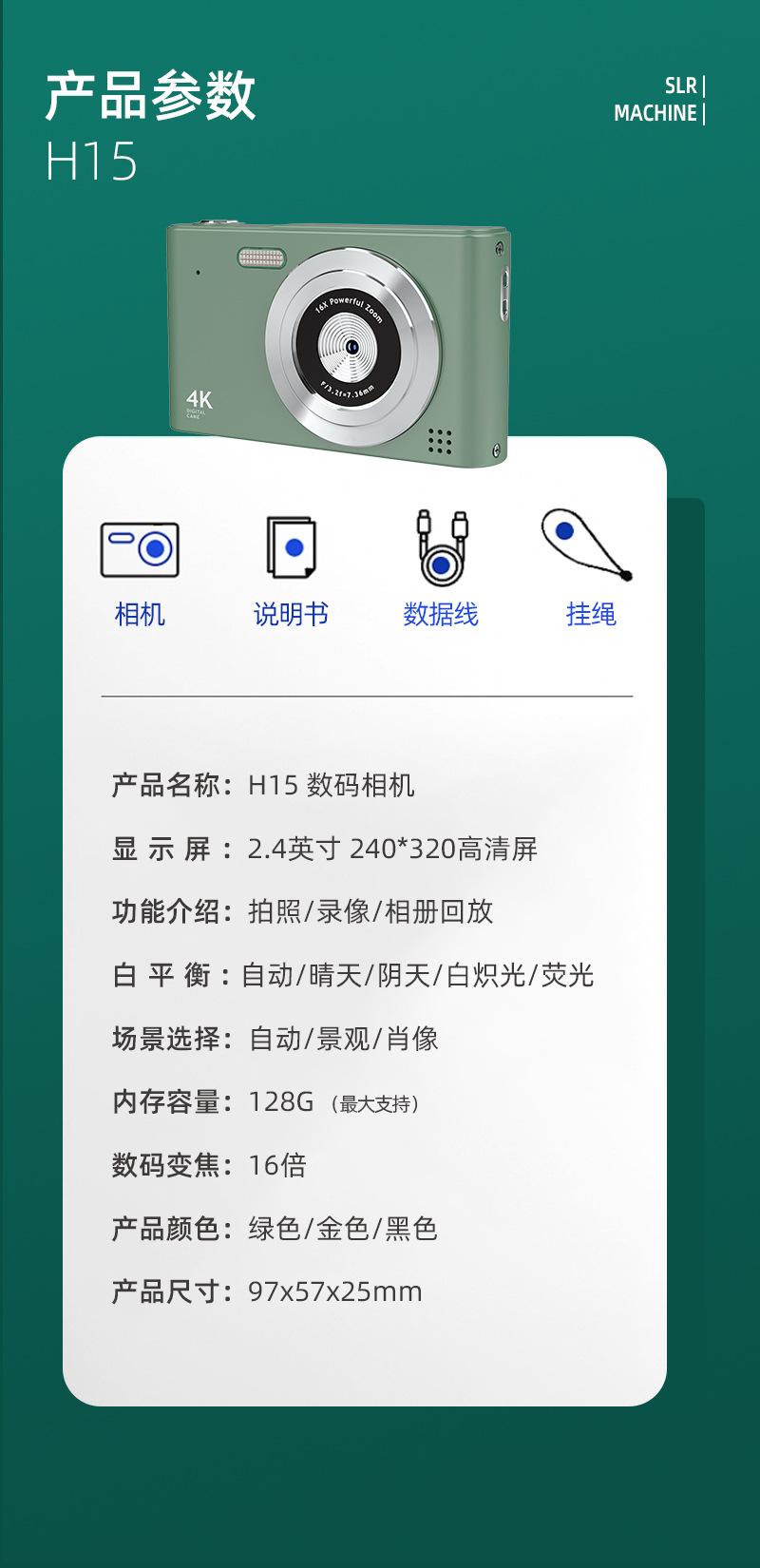 Nova câmera de estudante, máquina de cartão CCD, câmera SLR de nível básico, 4K, câmera dupla de alto pixel, portátil para viagem, atacado