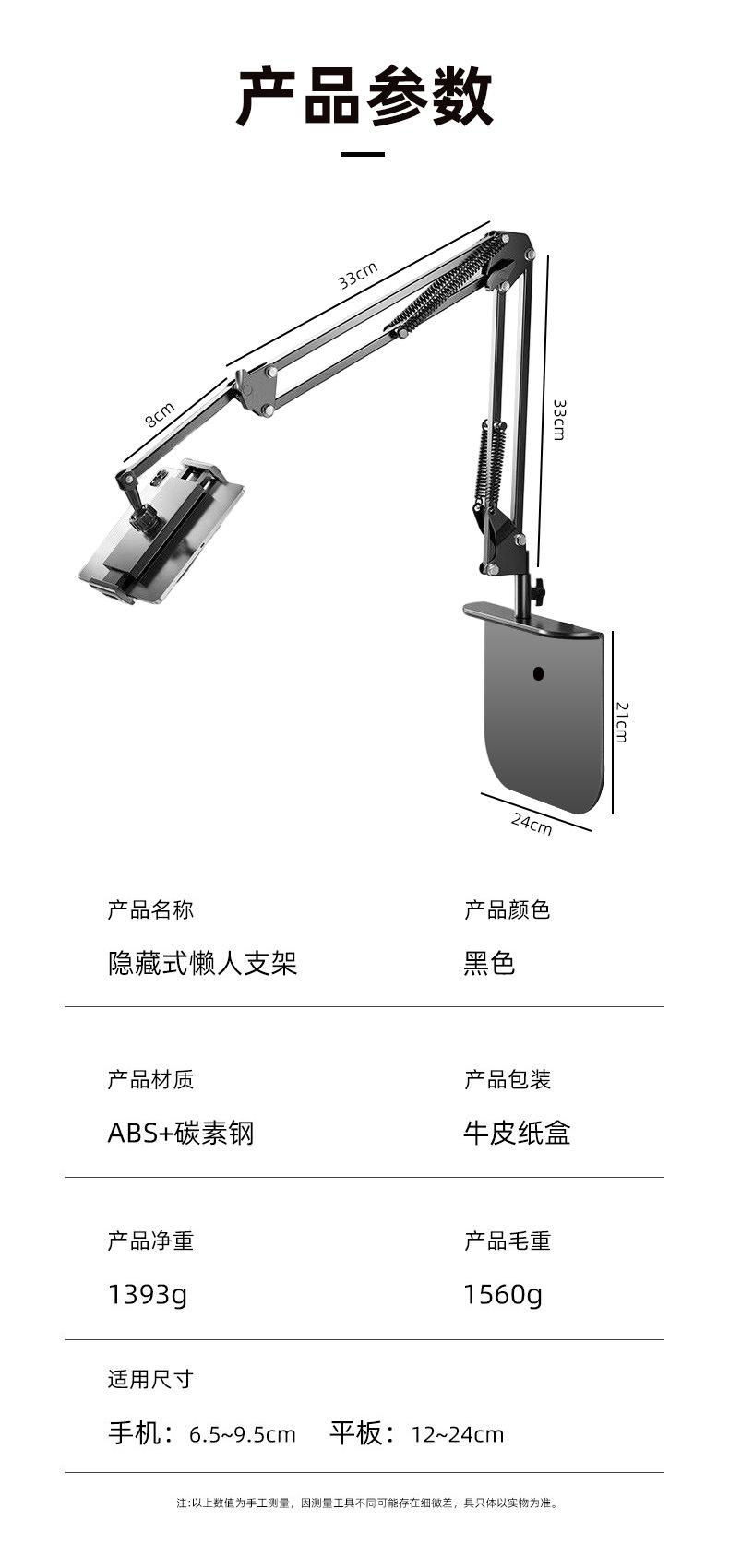 Suporte universal de cabeceira oculto sem clipes preguiçoso suporte para celular tablet suporte de mesa suporte de metal cantilever