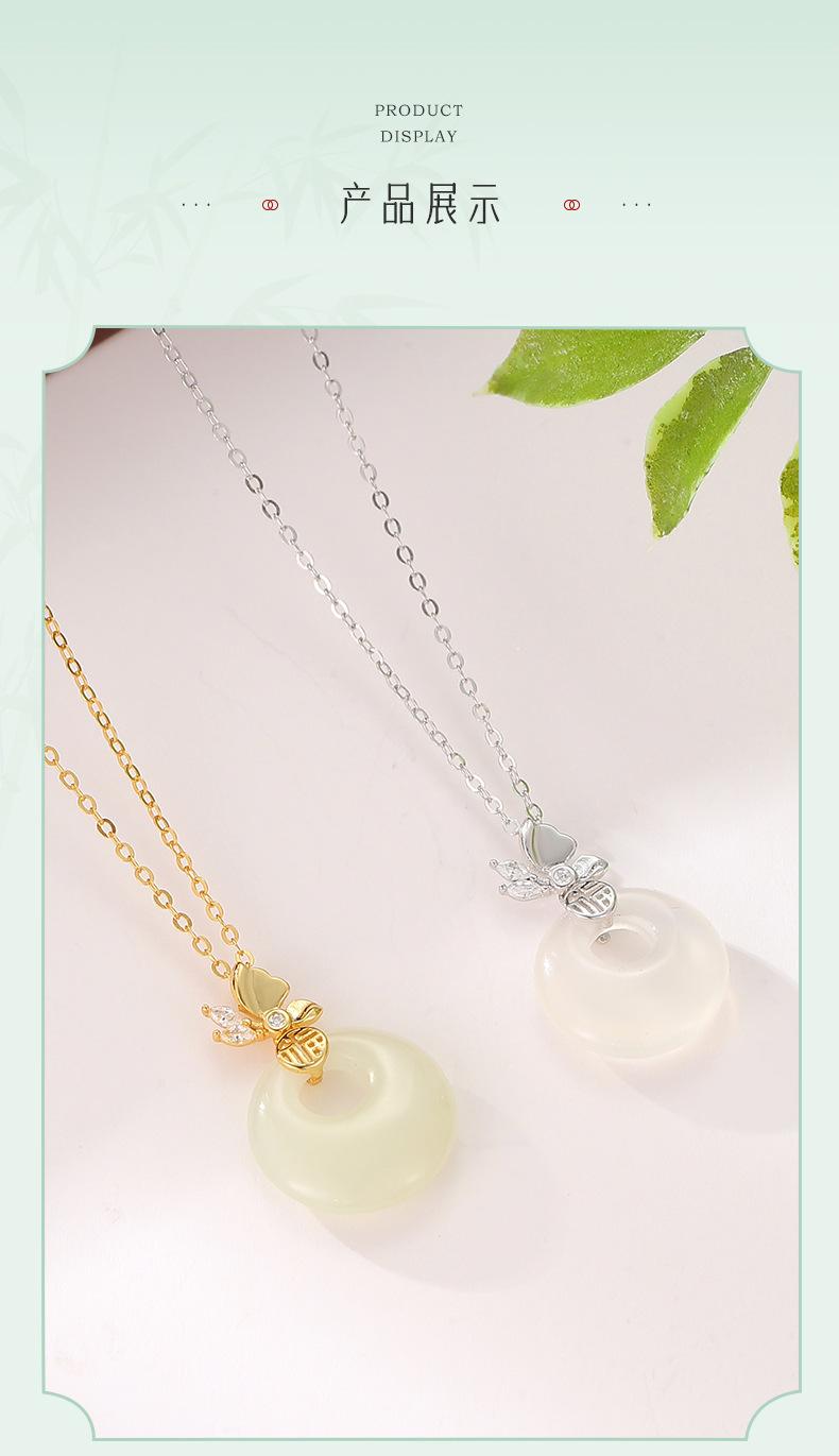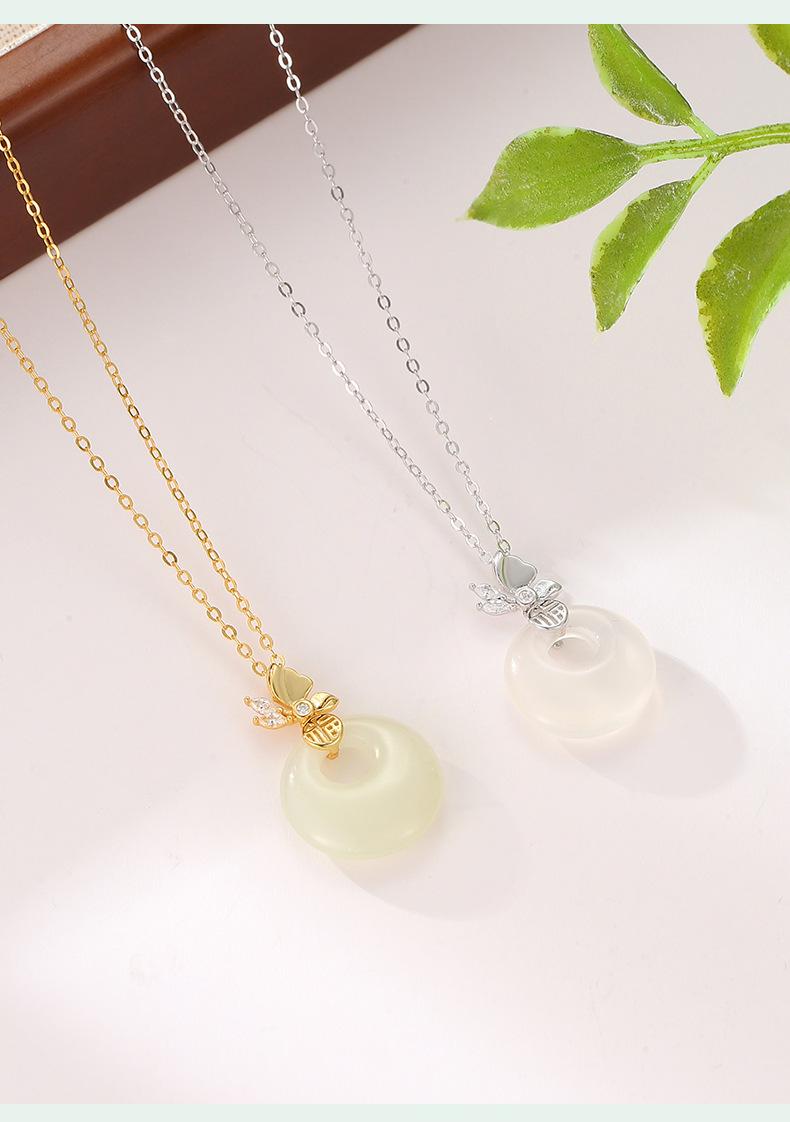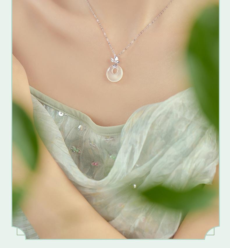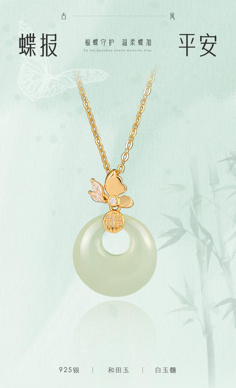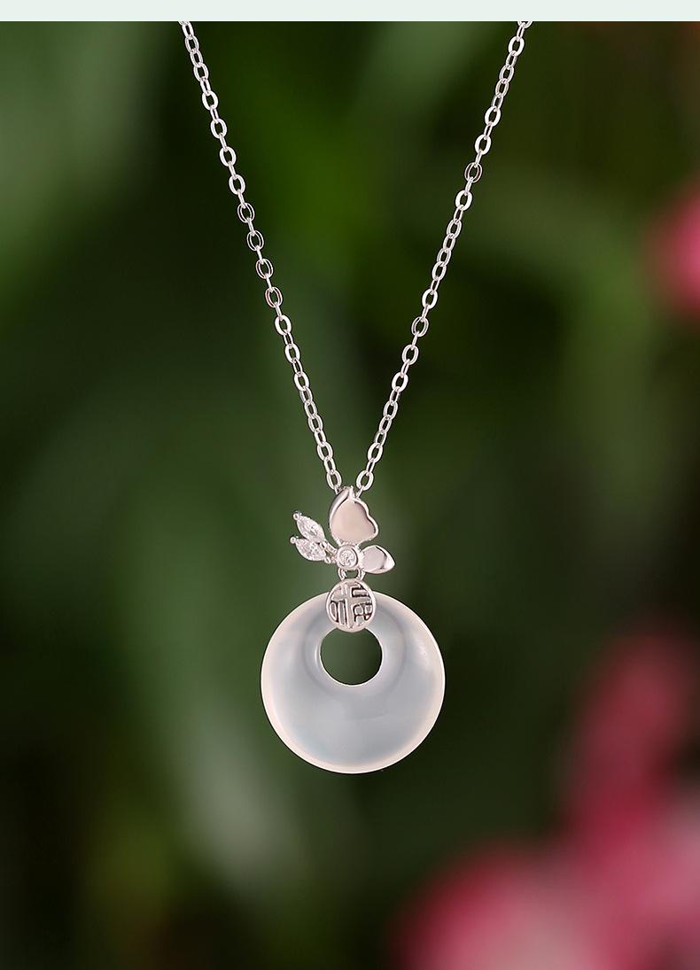 Compre Colar com fivela de borboleta Fuzi original, colar feminino de prata esterlina, novo estilo chinês, retrô, de alta qualidade, jade hetian, pingente de calcedônia branca no atacado no Joom.pro