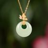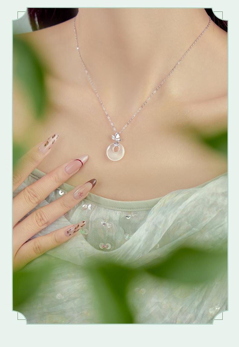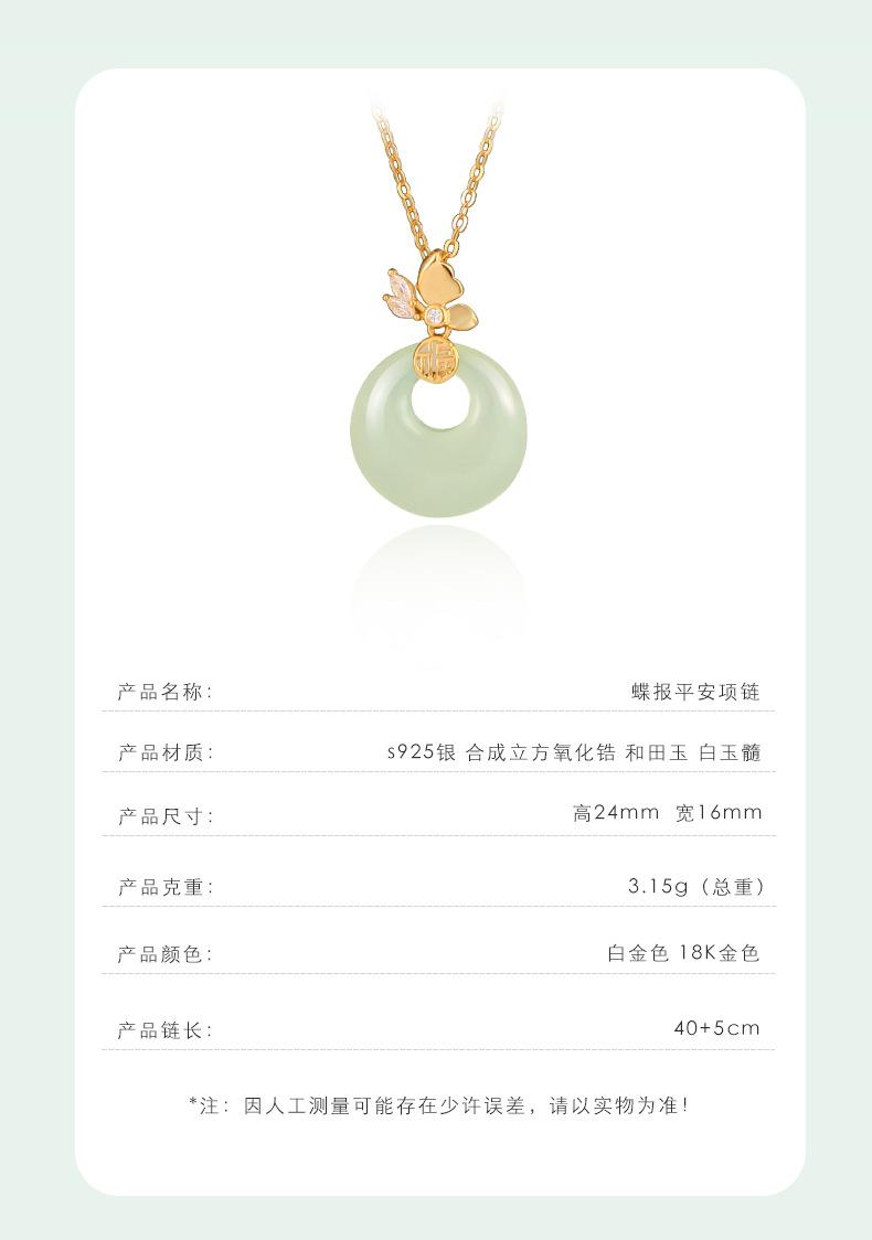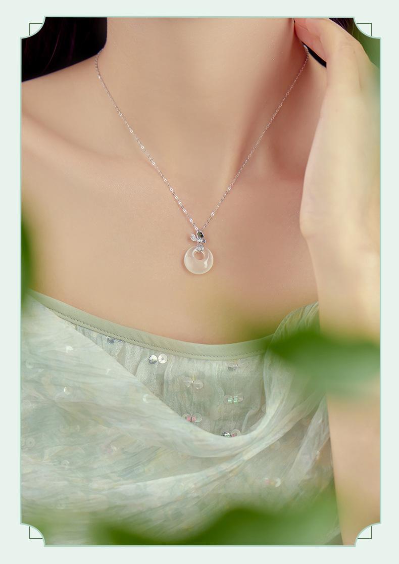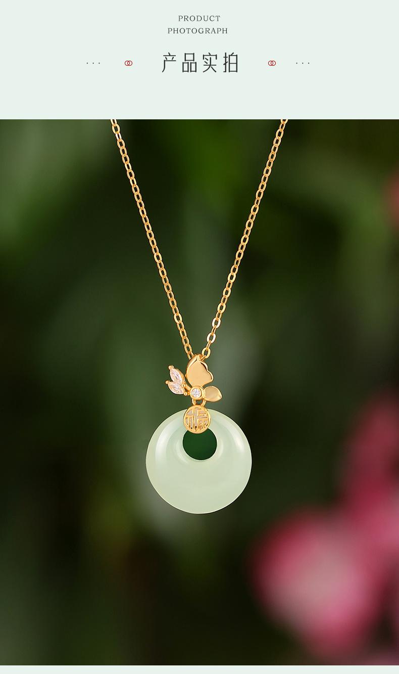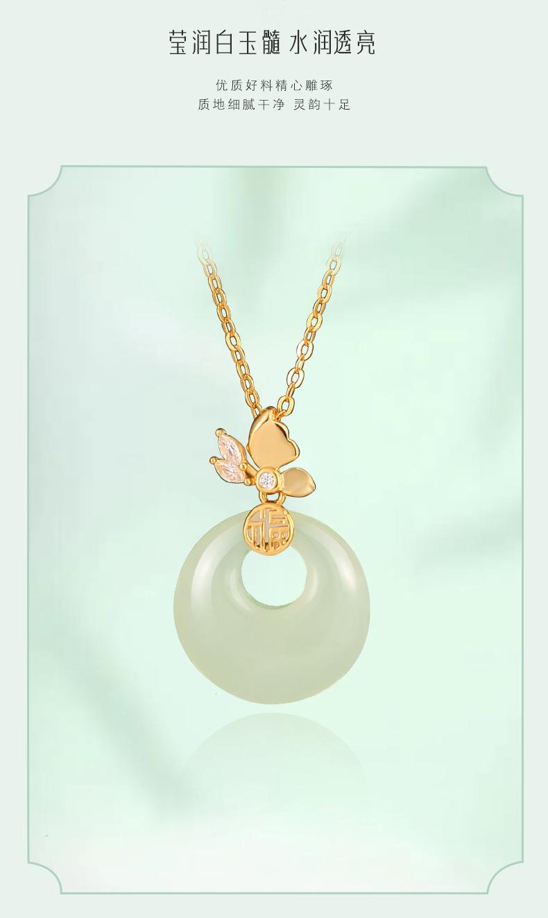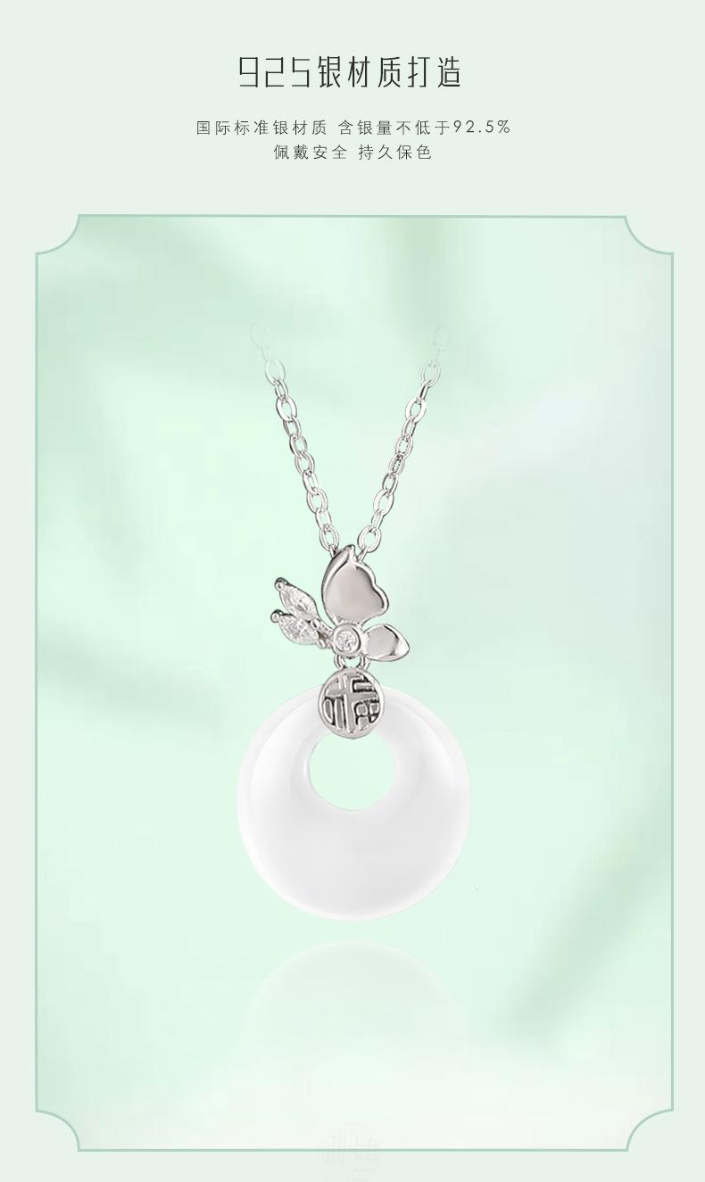 Colar com fivela de borboleta Fuzi original, colar feminino de prata esterlina, novo estilo chinês, retrô, de alta qualidade, jade hetian, pingente de calcedônia branca