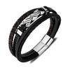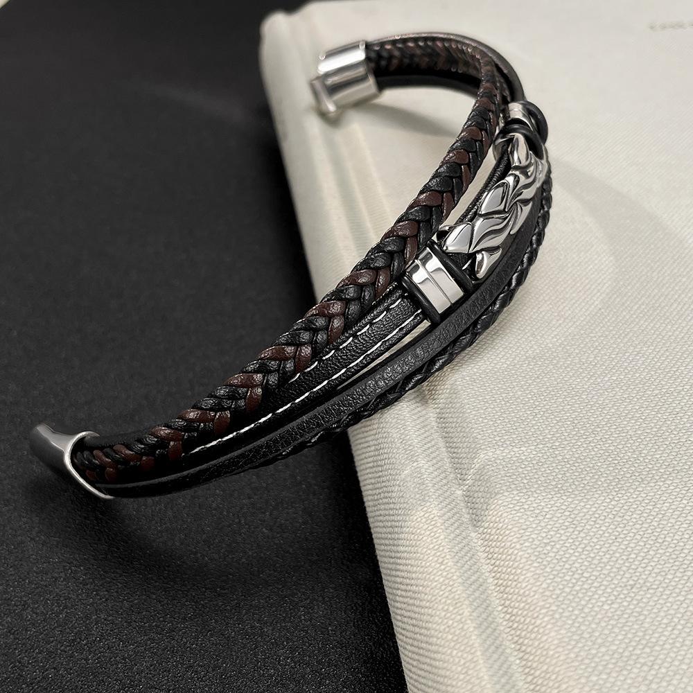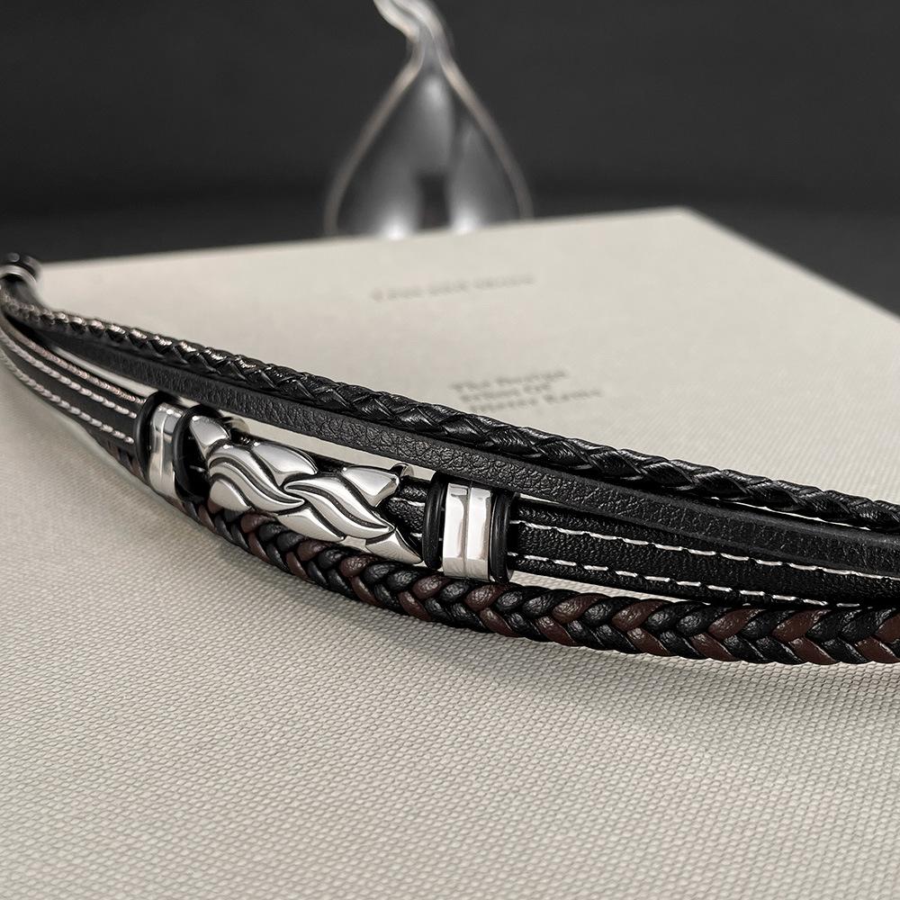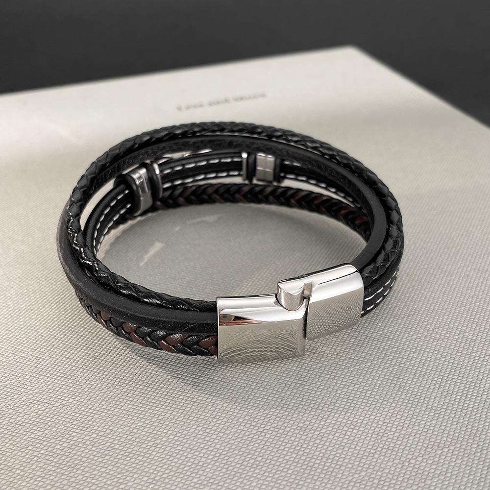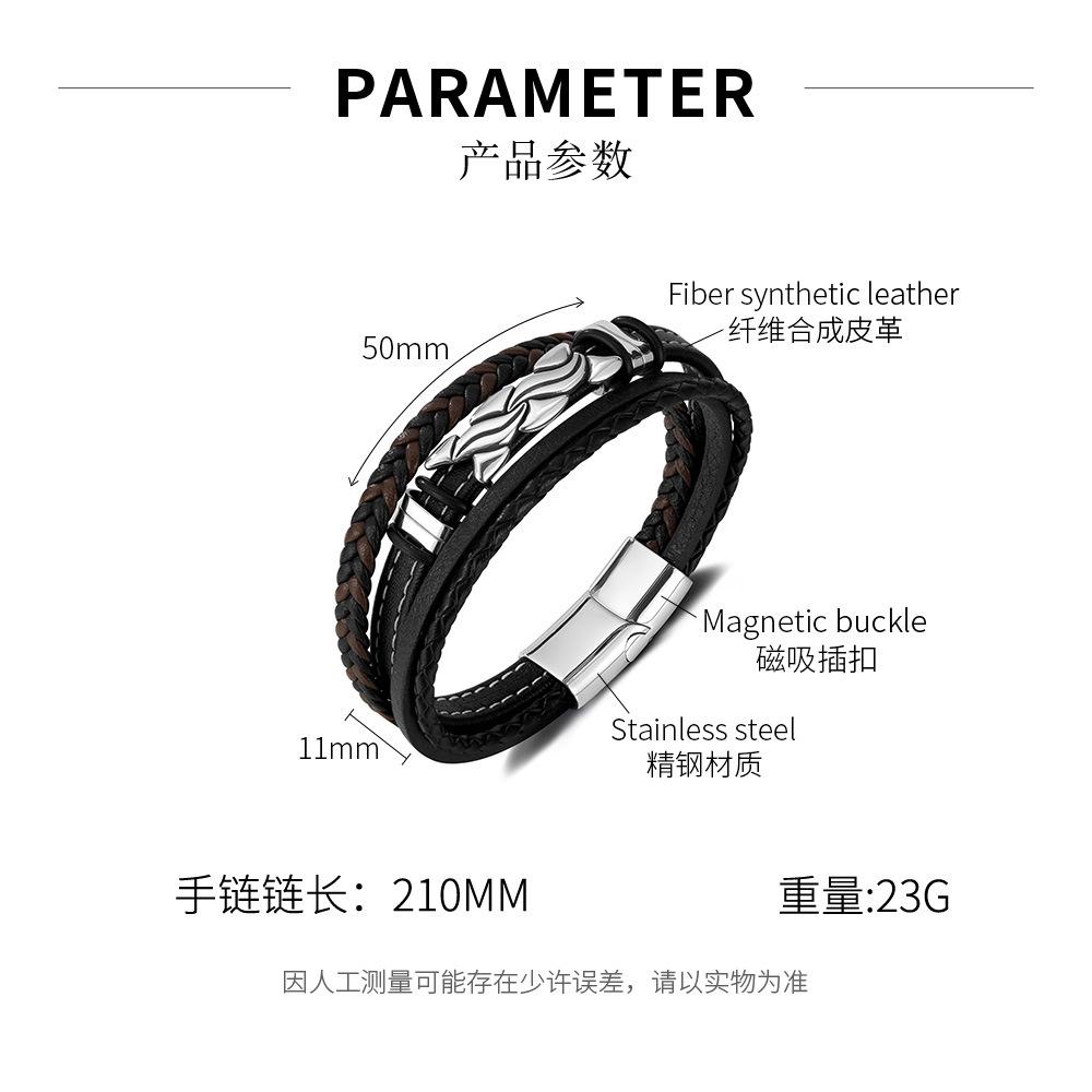 Pulseira de Couro Transfronteiriça Europeia e Americana OPK Masculina Aço Inoxidável Geométrica Personalizada Hip-hop Fashionável Multicamadas Tecida em Couro