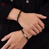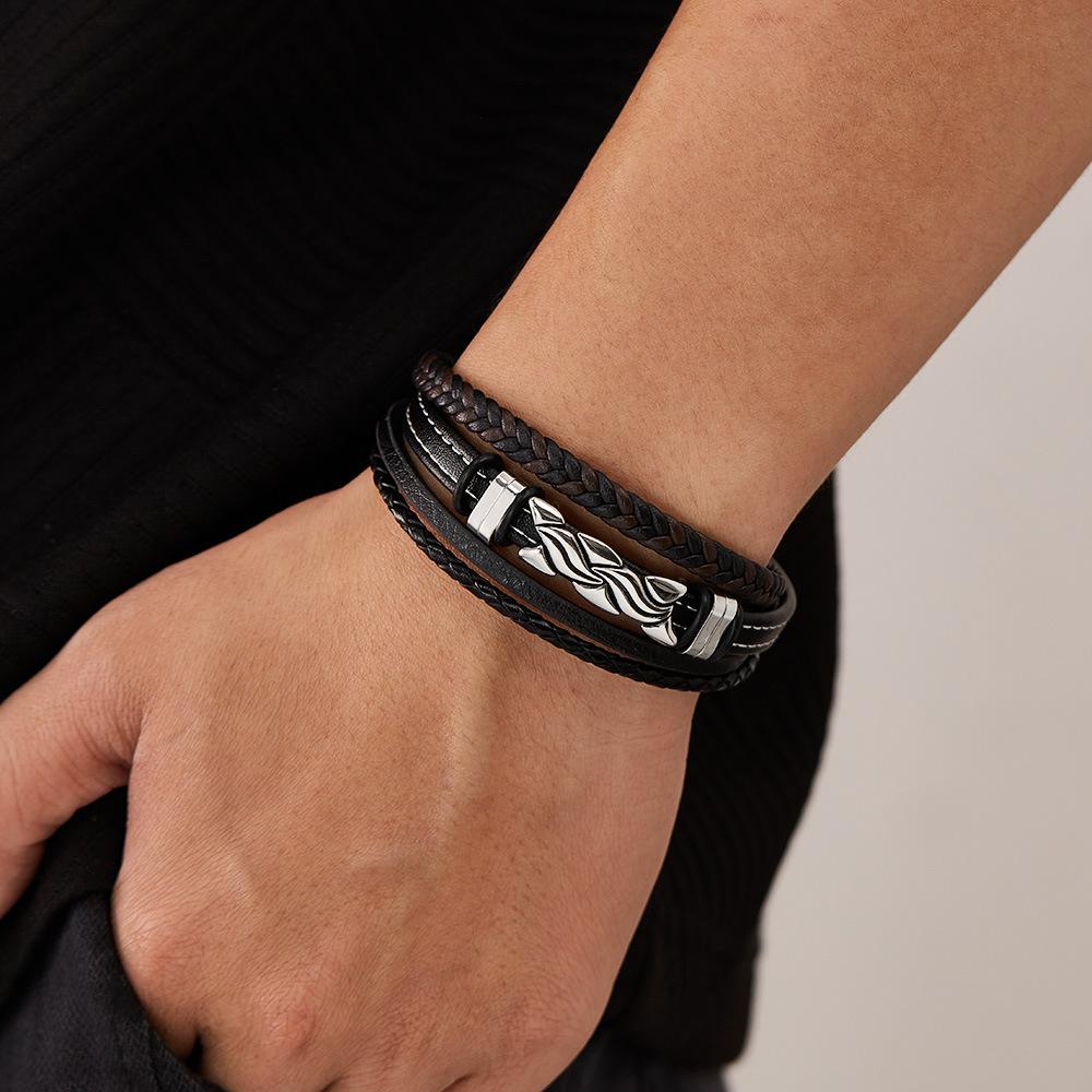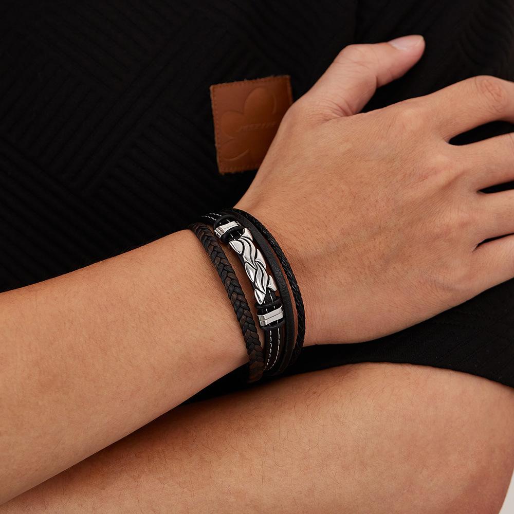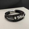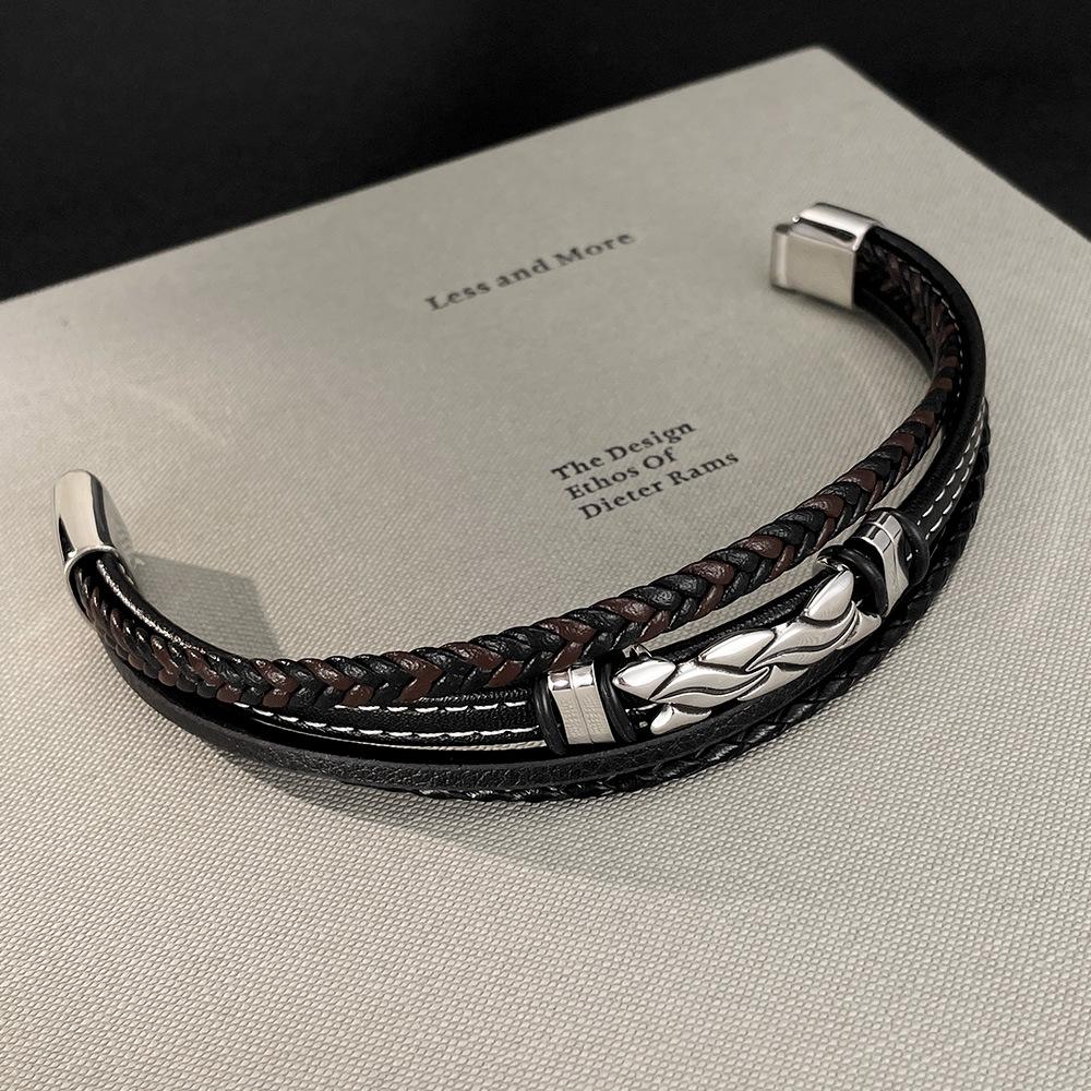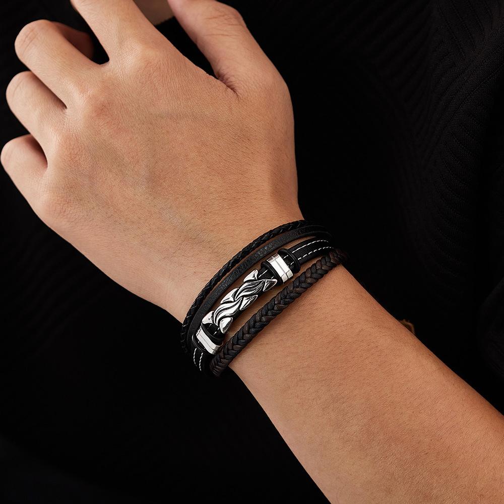 Pulseira de Couro Transfronteiriça Europeia e Americana OPK Masculina Aço Inoxidável Geométrica Personalizada Hip-hop Fashionável Multicamadas Tecida em Couro