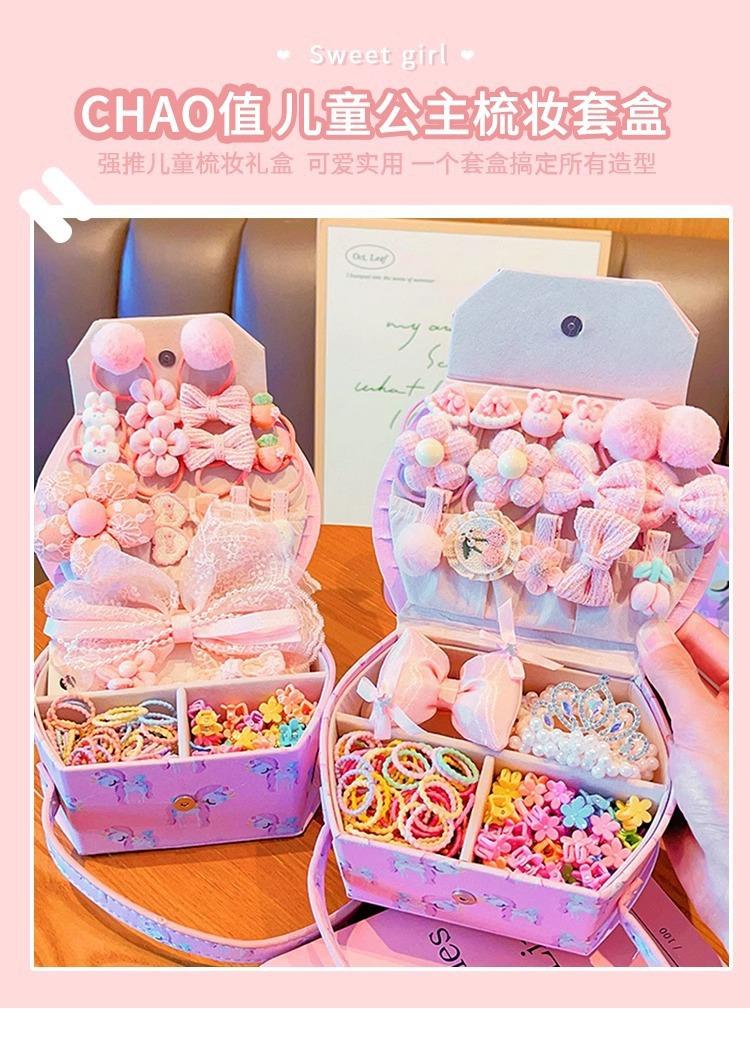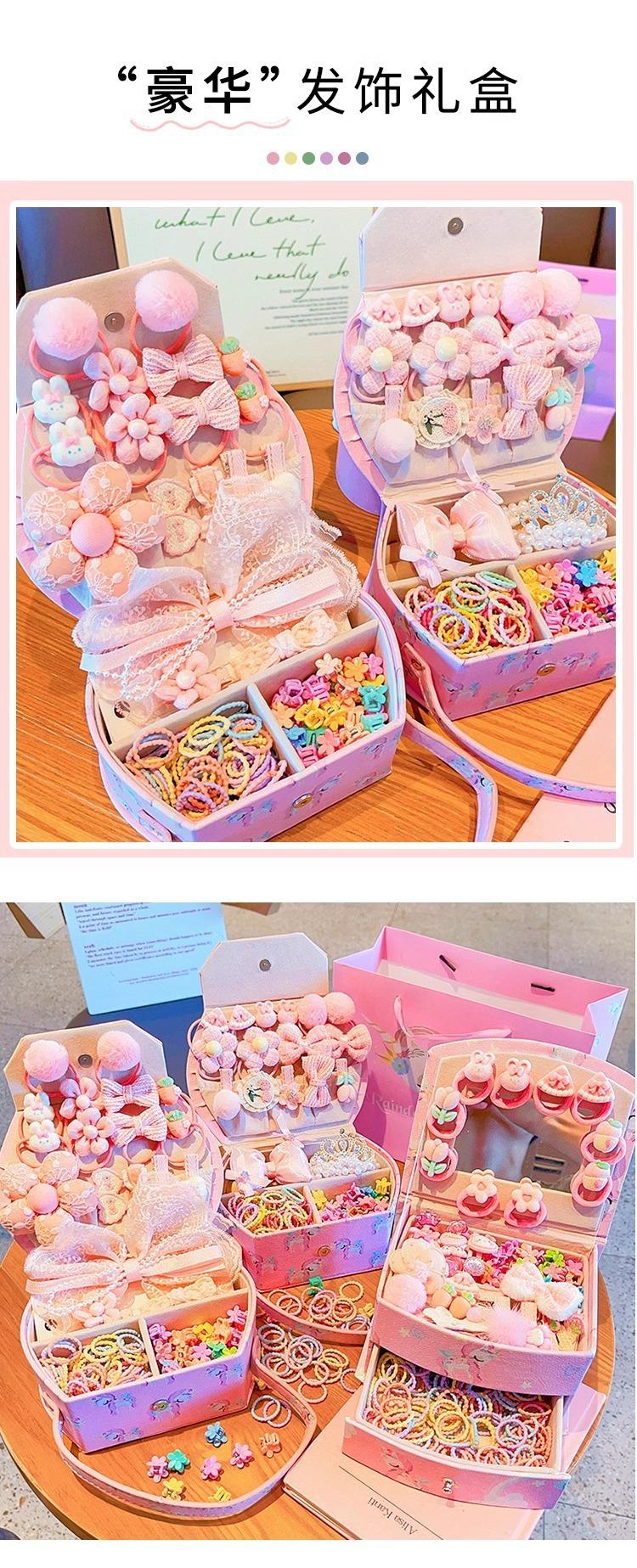 Acessórios para o cabelo das crianças conjunto caixa de presente meninas presente de aniversário hairpin elástico cocar pequena princesa caixa de jóias bonito atacado