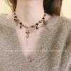 Retrô descolado! Colar de cruz com contas de pedra olho de tigre feminino 2024 novo nicho de moda suéter corrente design sentido
