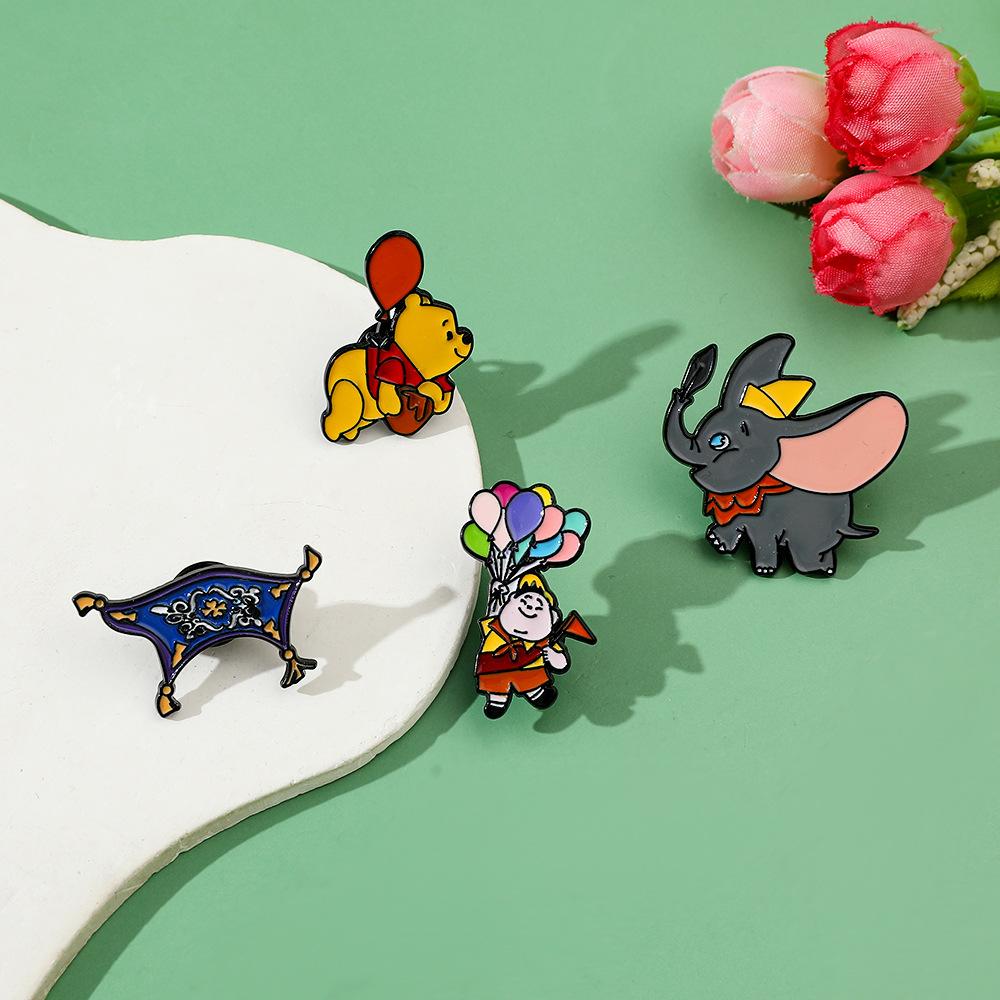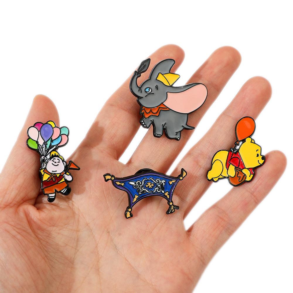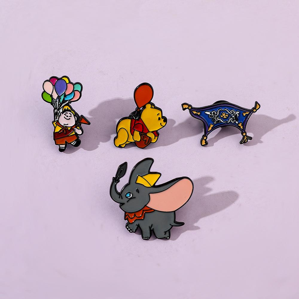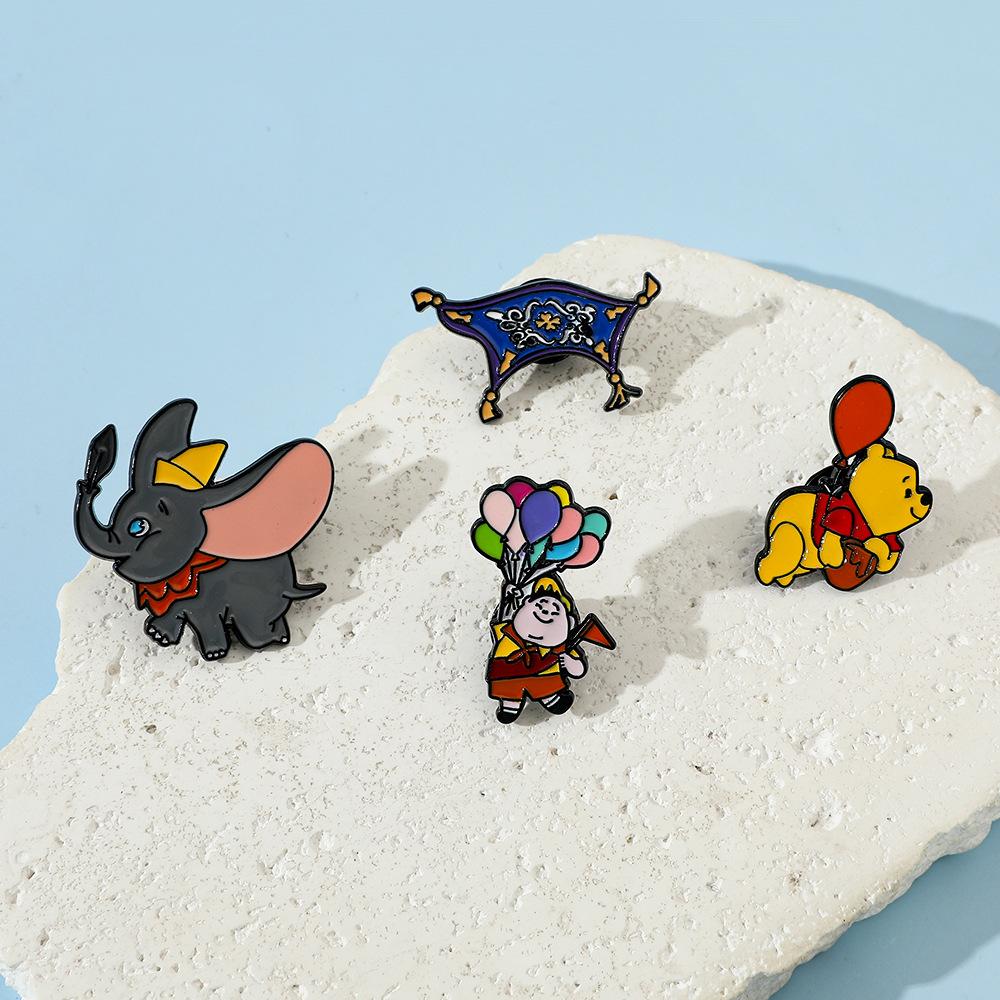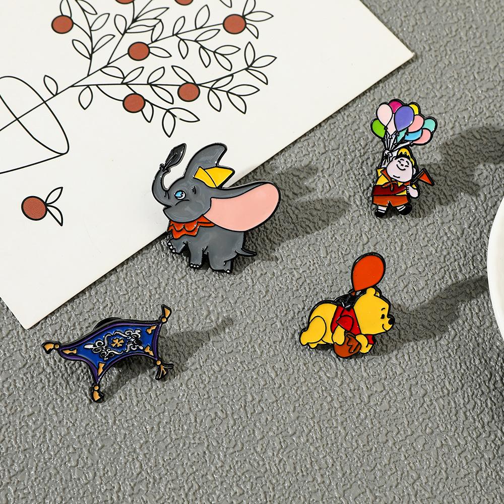 Personagem de desenho animado distintivo de metal criativo ursinho pooh dumbo tapete voador liga gota broche de óleo acessórios